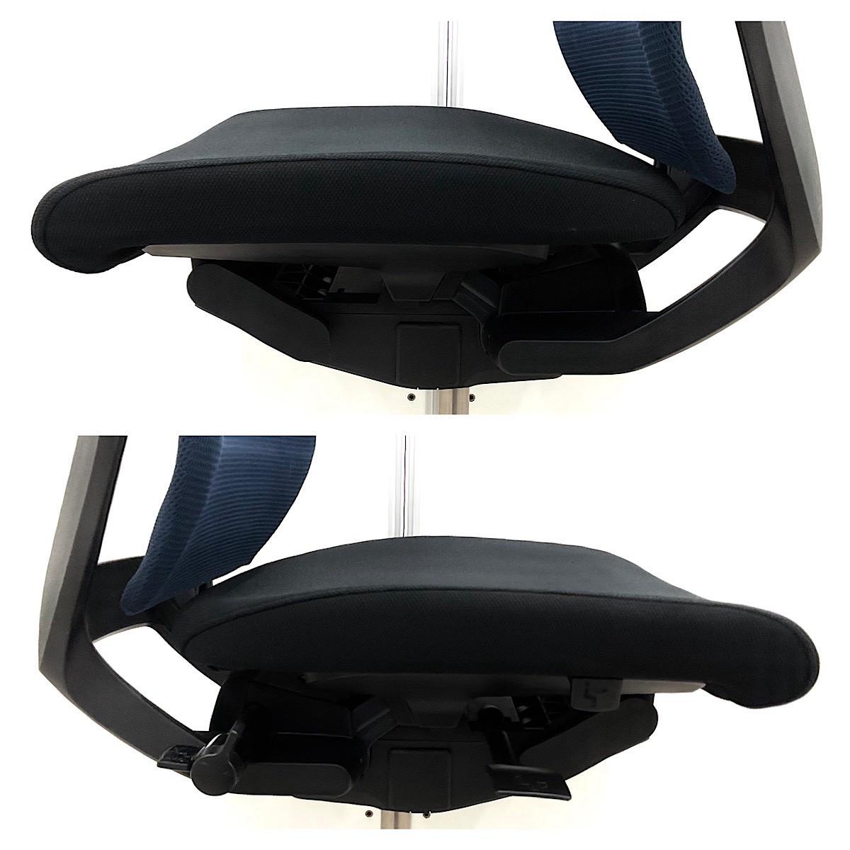 - 座面下のレバー操作により、座面を50mmのストローク(16.7mmピッチ)で好みの位置に調節できます。体格や作業姿勢に合わせたポジション設定が行えます。