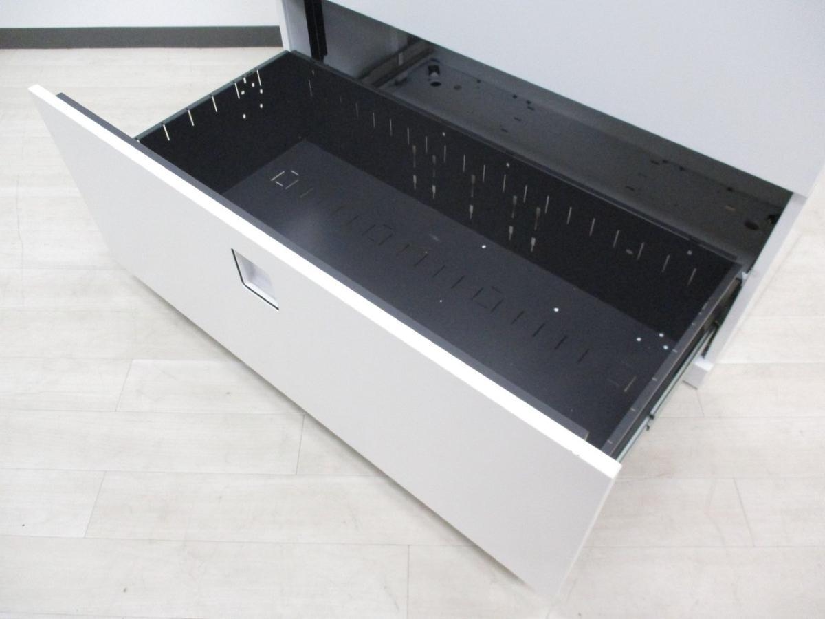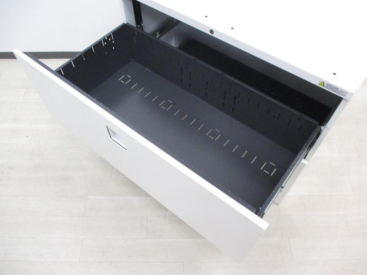 【オフィスの必需品!大容量の三段キャビネット!】■オカムラ(okamura)製 レクトラインシリーズ 3段ラテラル ローキャビネット ■天板/ベース付 ■シリンダー錠 ■ホワイト 【弊社使用欄:A01037187】