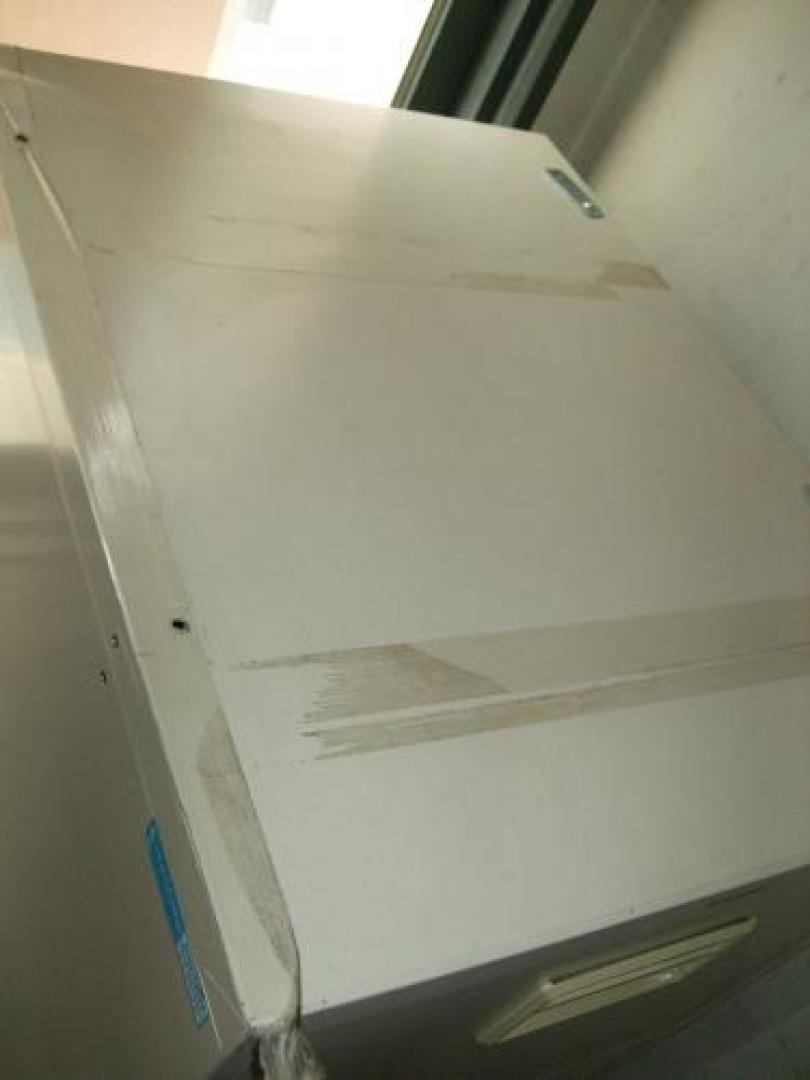 - 目立つ箇所複数あり深い傷・凹みが商品全体にある。(例、天板、正面、背部、サイド部分にある。)