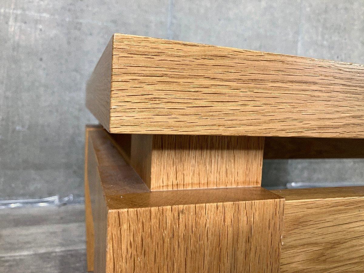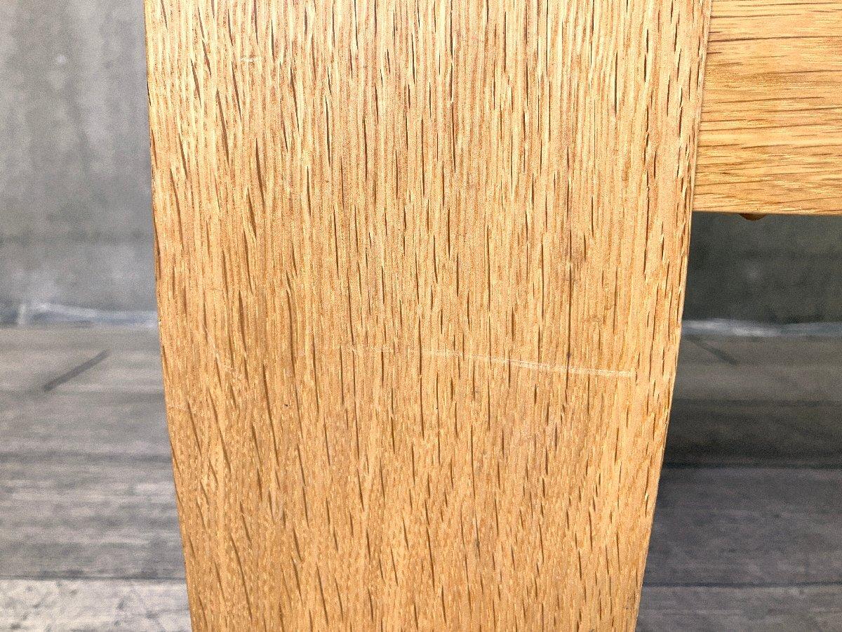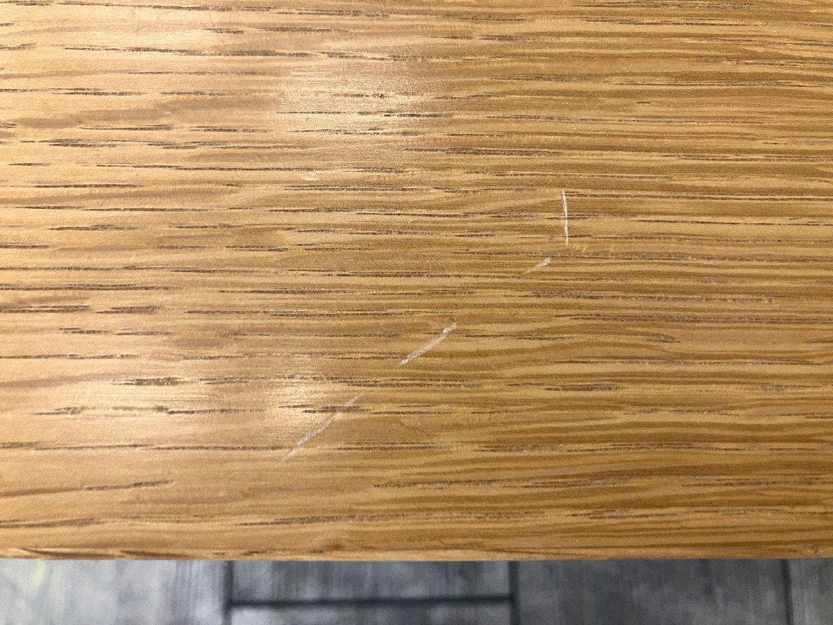 - 目立つ箇所あり傷・凹みが多数、深い傷・凹みが一部ある。(例、天板、幕板、棚板、サイド部分、脚部等にある。)