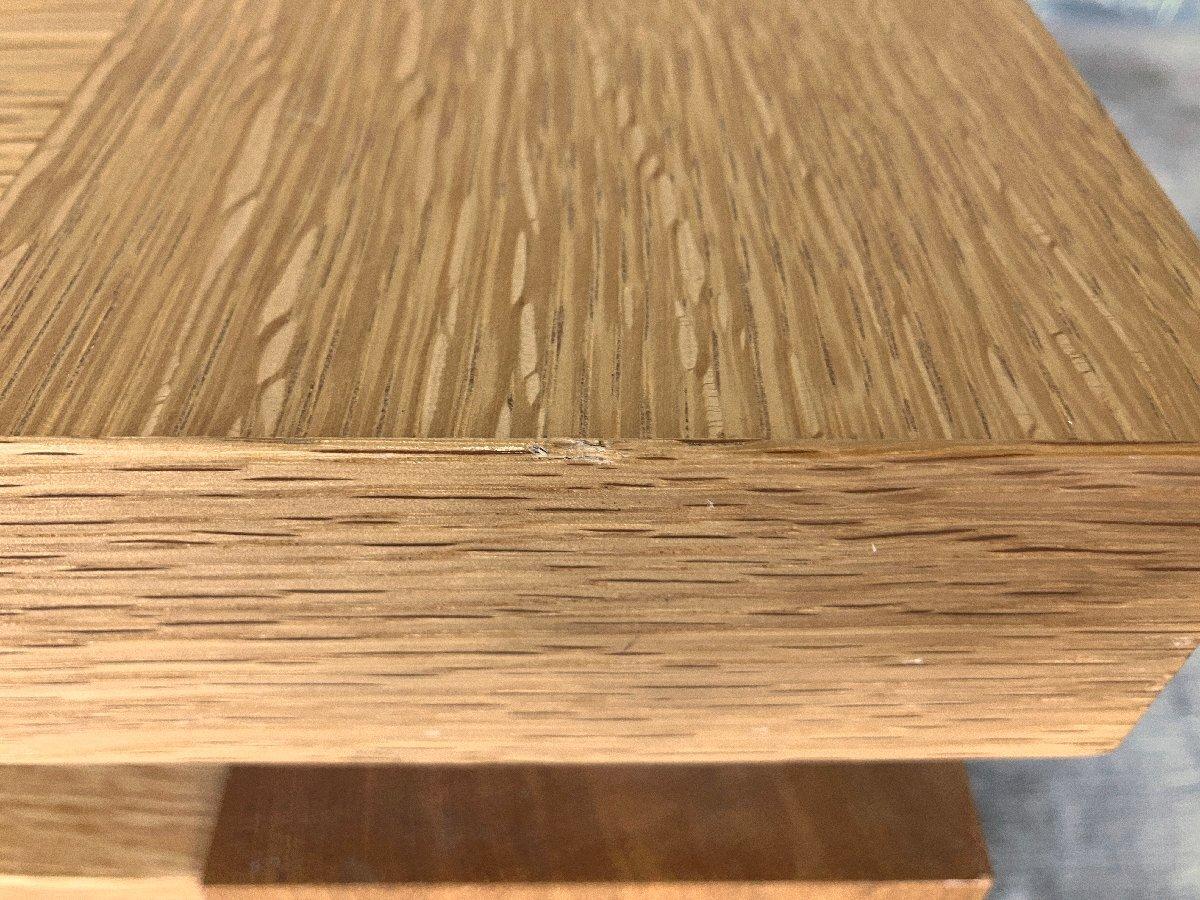 - あり黄ばみ・変色が広い範囲にうっすらある、または濃い黄ばみ・変色が一部ある。(例、天板、幕板、棚板、サイド部分、脚部等にある。)