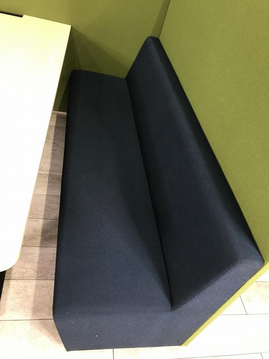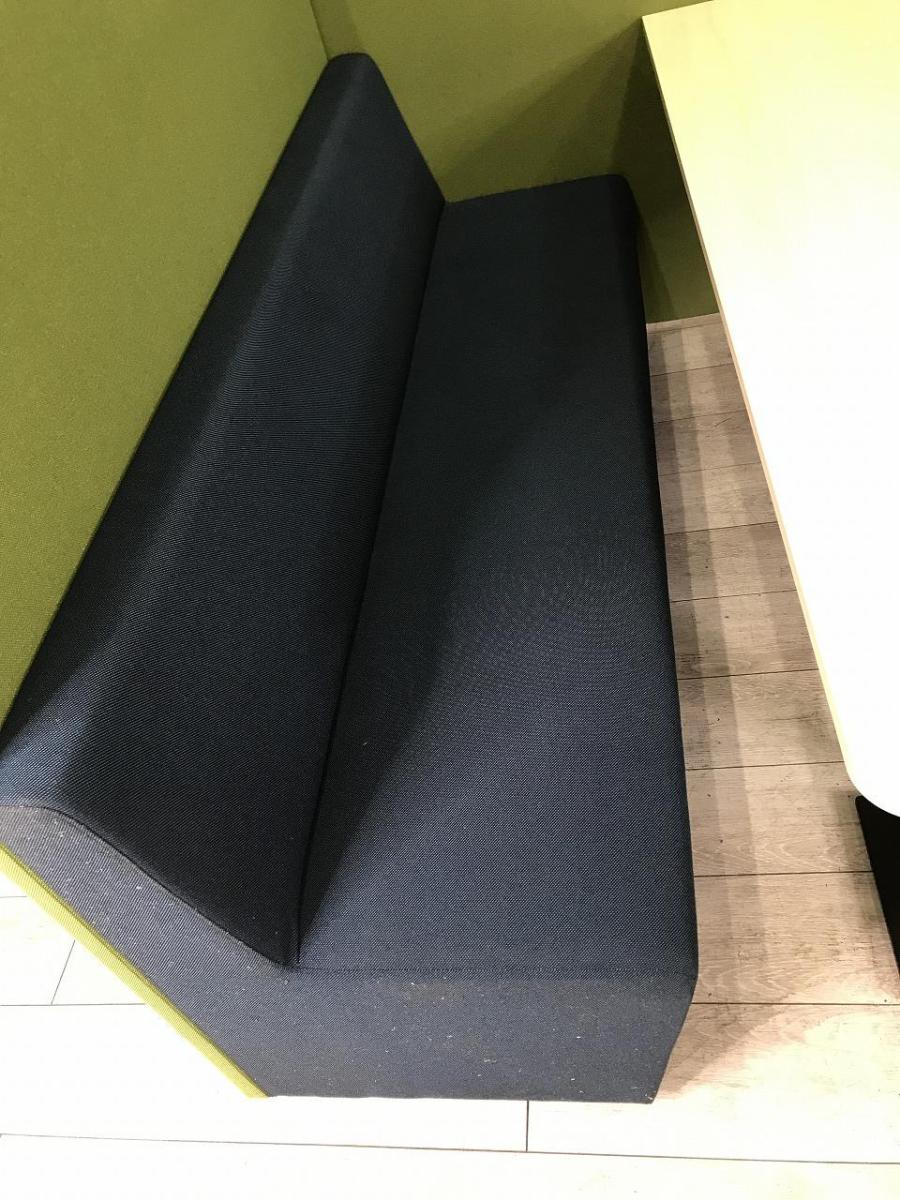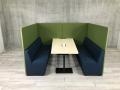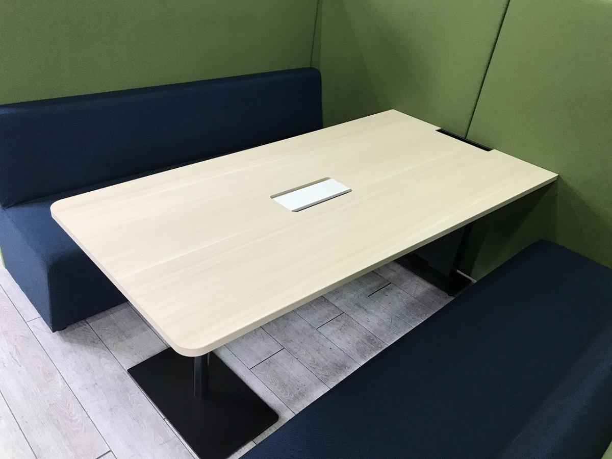 【ミーテイングワークソファのスタンダード!モニターフレーム付きのテーブルがセット!】■ウチダ(UCHIDA)製 ベイクシリーズ(BAKE) ミーティングブース ファミレスブース ■テーブル:モニターフレーム付き 配線口付き ■ソファ:ブルー パネル:グリーン 【ABW商材】【関東倉庫在庫品】【弊社使用欄:A01026680】- 全店共通商品
