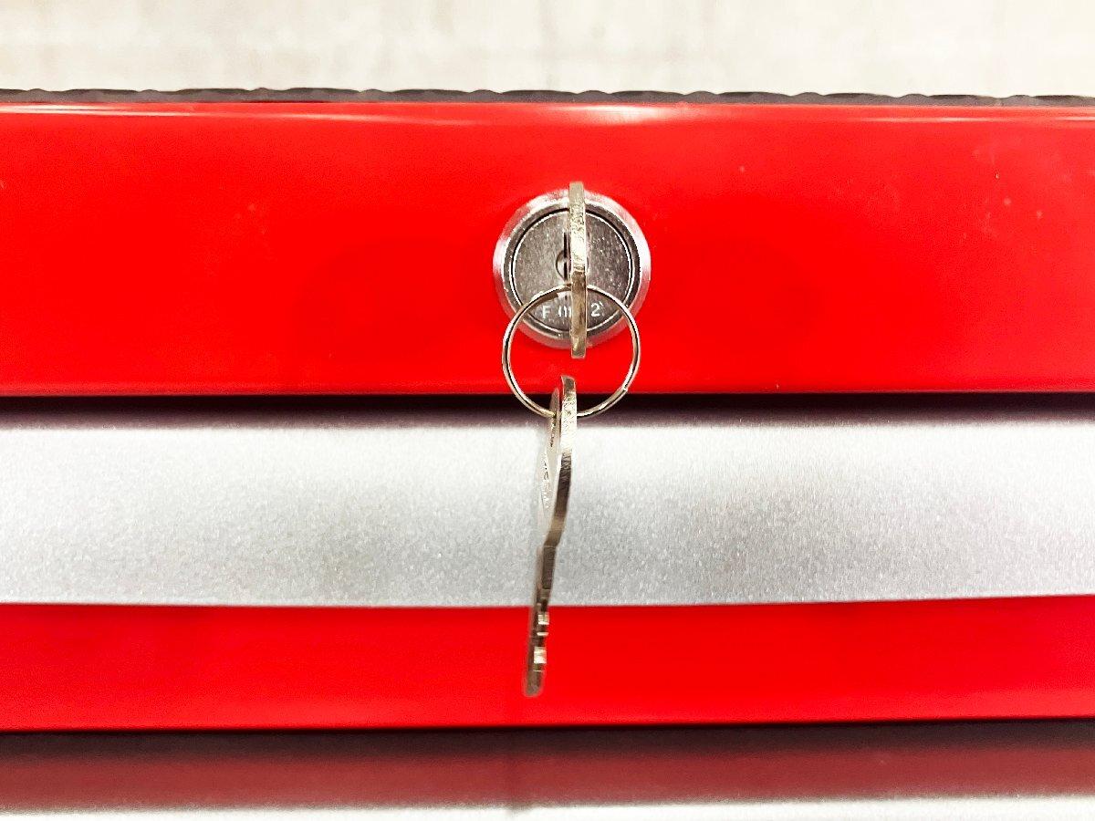 複数の引き出しは浅型から深型までバランスよく配置され、ソケット類から大型工具まで整理しやすい構成。いずれもスムーズに開閉できるレールを採用しており、頻繁な出し入れにもストレスがありません。 下部にはKTCロゴ入りで、ブランドらしい存在感もポイント。
