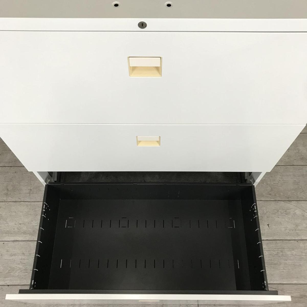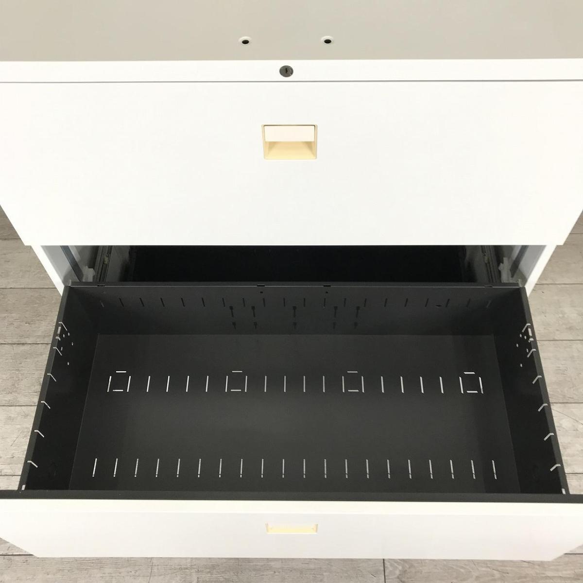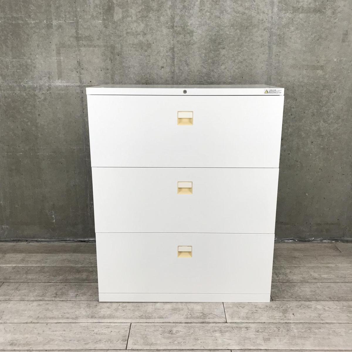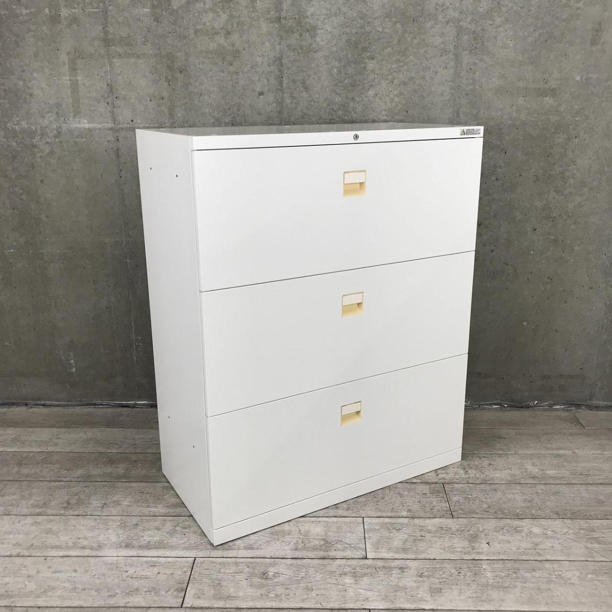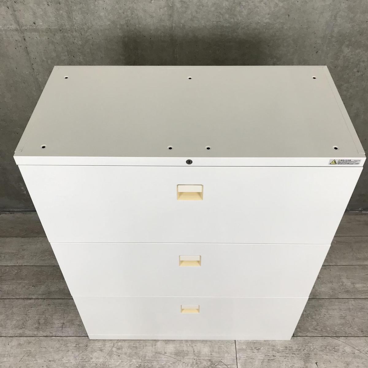 【在庫入替セール品】【オフィス書類をスッキリ整理!】■オカムラ製 3段ラテラル書庫 ホワイト天板付 ■ファイル収納にオススメ!引出し型キャビネット!