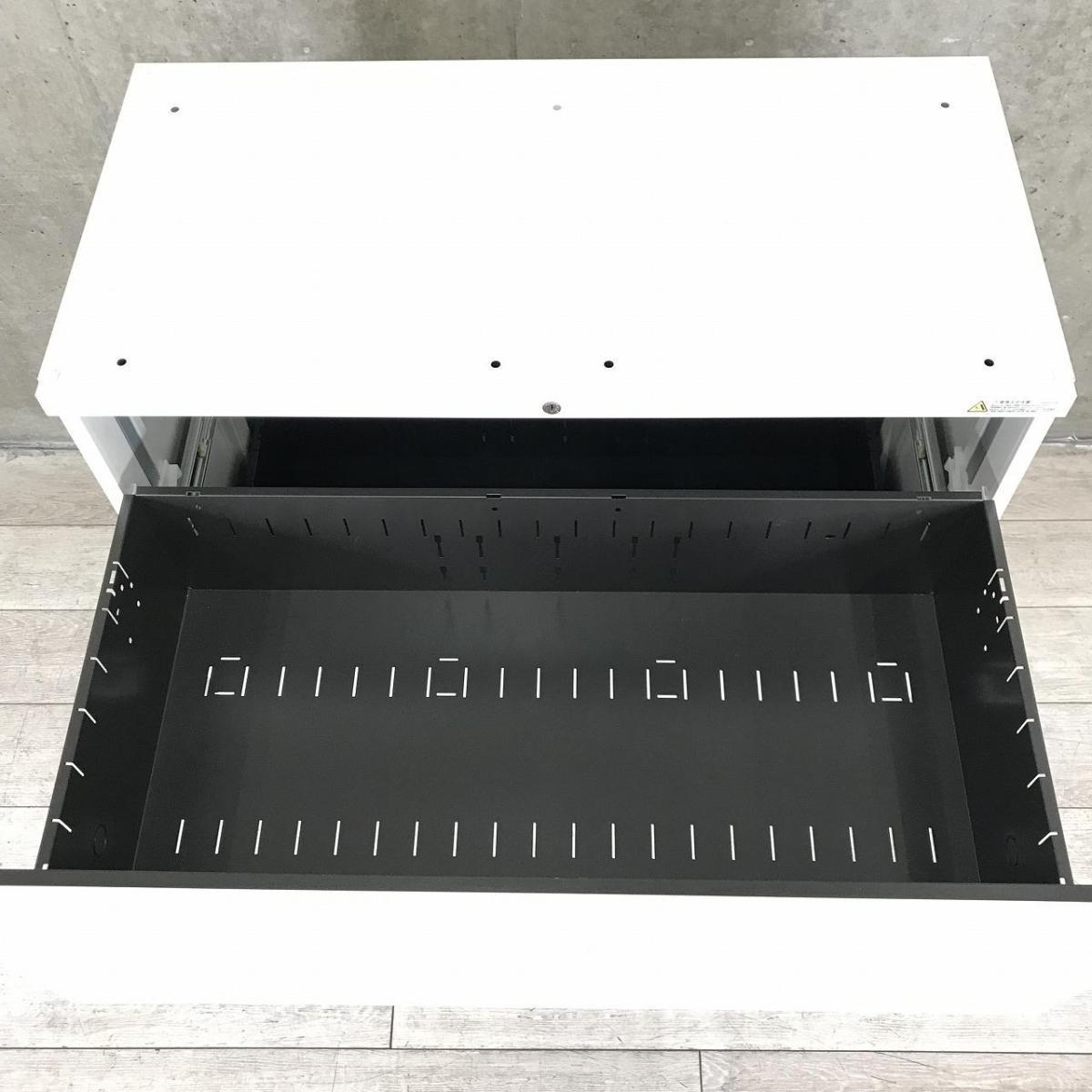 【大きく開いて収納物が見やすく、収納力も抜群!どの空間でも使いやすいホワイトカラー!】■オカムラ(okamura)製 3S書庫シリーズ 3段ラテラル ローキャビネット W900×D450㎜ ■シリンダー錠 ■ホワイト ※取手日焼け有【AD】