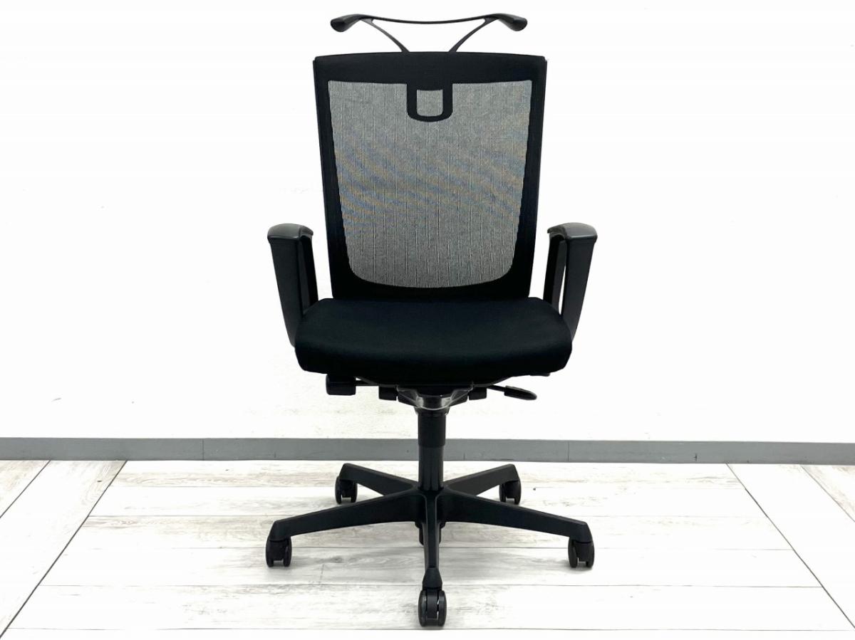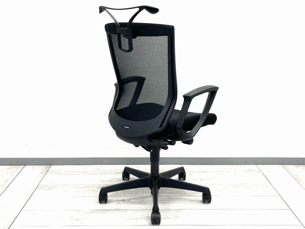 【在庫入替セール】【4脚限定】【背中全体をサポートするハイバックタイプのメッシュチェア!】■okamura(オカムラ)製 エスクード(ESCUDO)チェア 肘付き ハイバック 背面メッシュ ■可動肘 ■色:ブラック【K10】