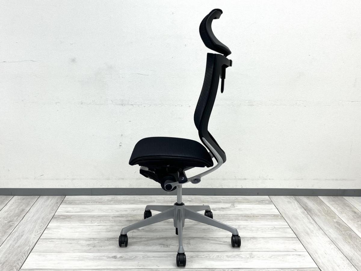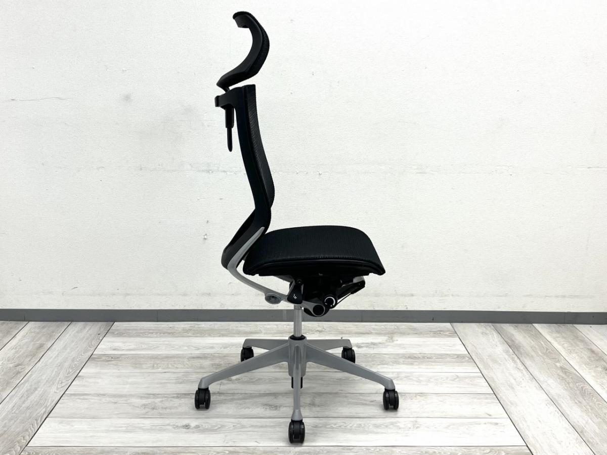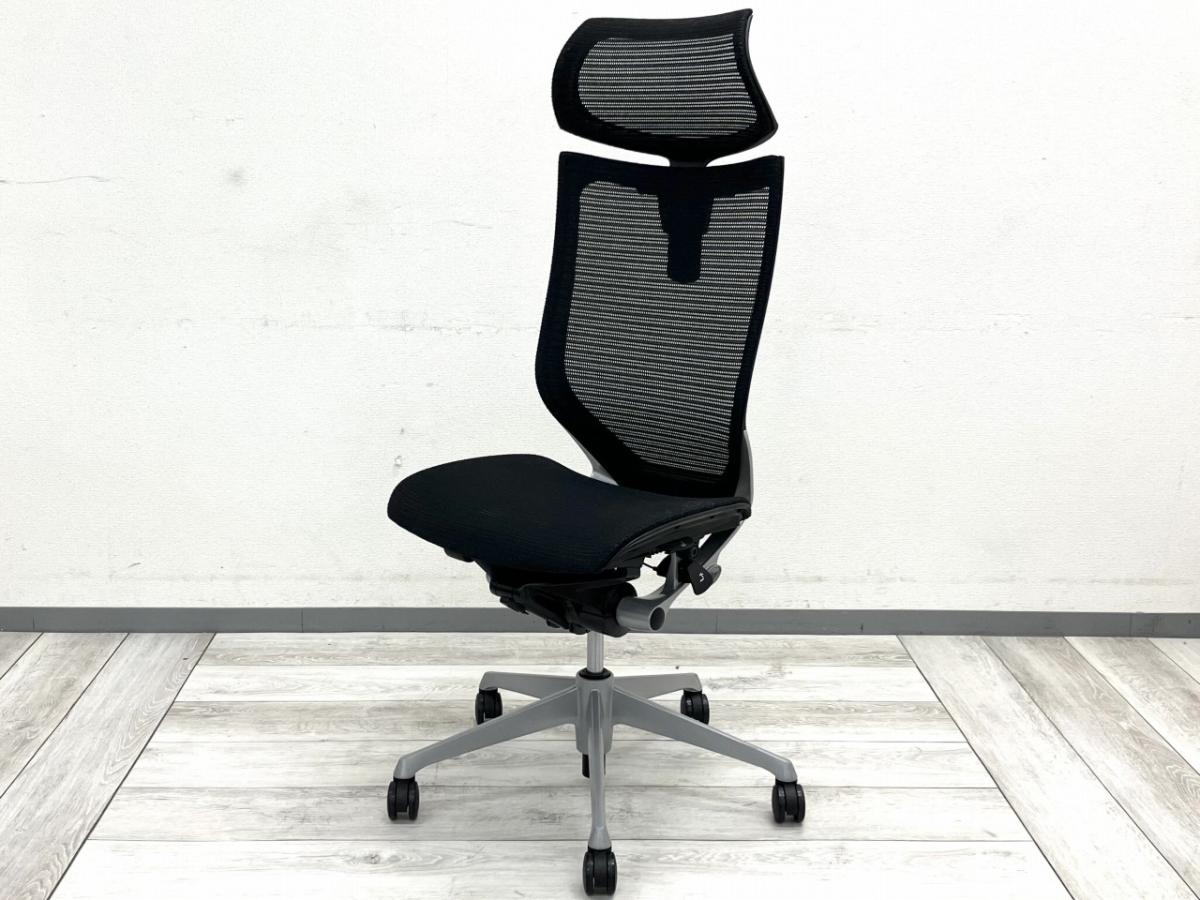 オカムラのバロンチェアは、高い通気性と軽快な座り心地を実現した人気シリーズです。背座ともにメッシュのため、長時間の使用でも蒸れにくく快適に座れます。ヘッドレスト付きハイバックモデルは首・肩への負担を軽減し、リクライニング時のサポート性も向上。肘無し仕様は作業の自由度が高く、立ち座りや横方向の作業がしやすい点が特徴です。シルバー脚が全体のデザインを引き締め、上質でスマートな印象を与えます。