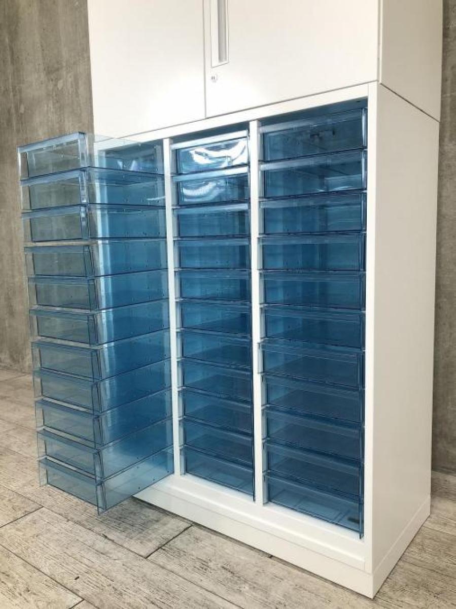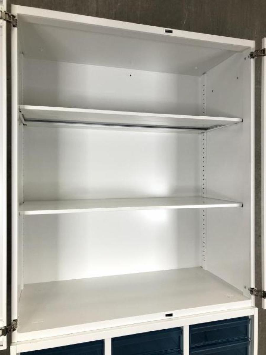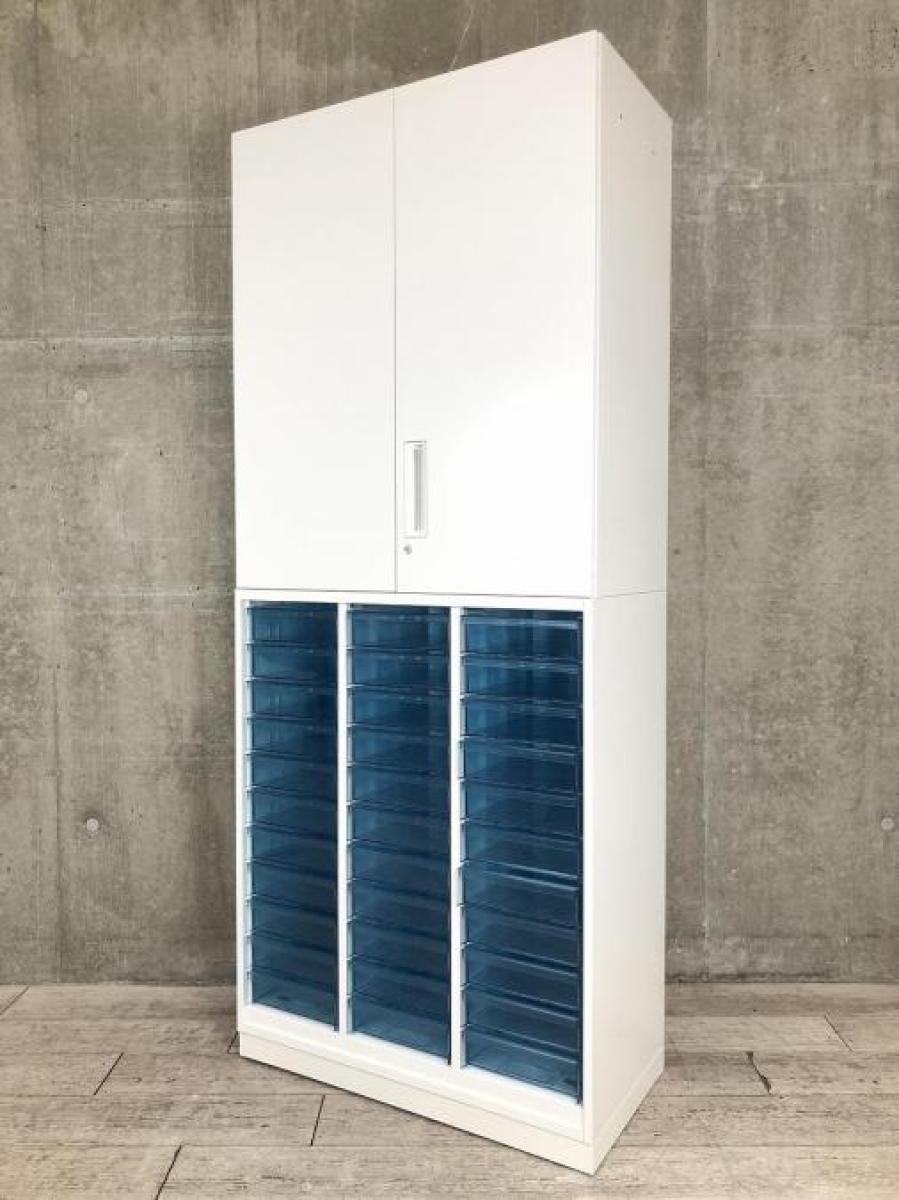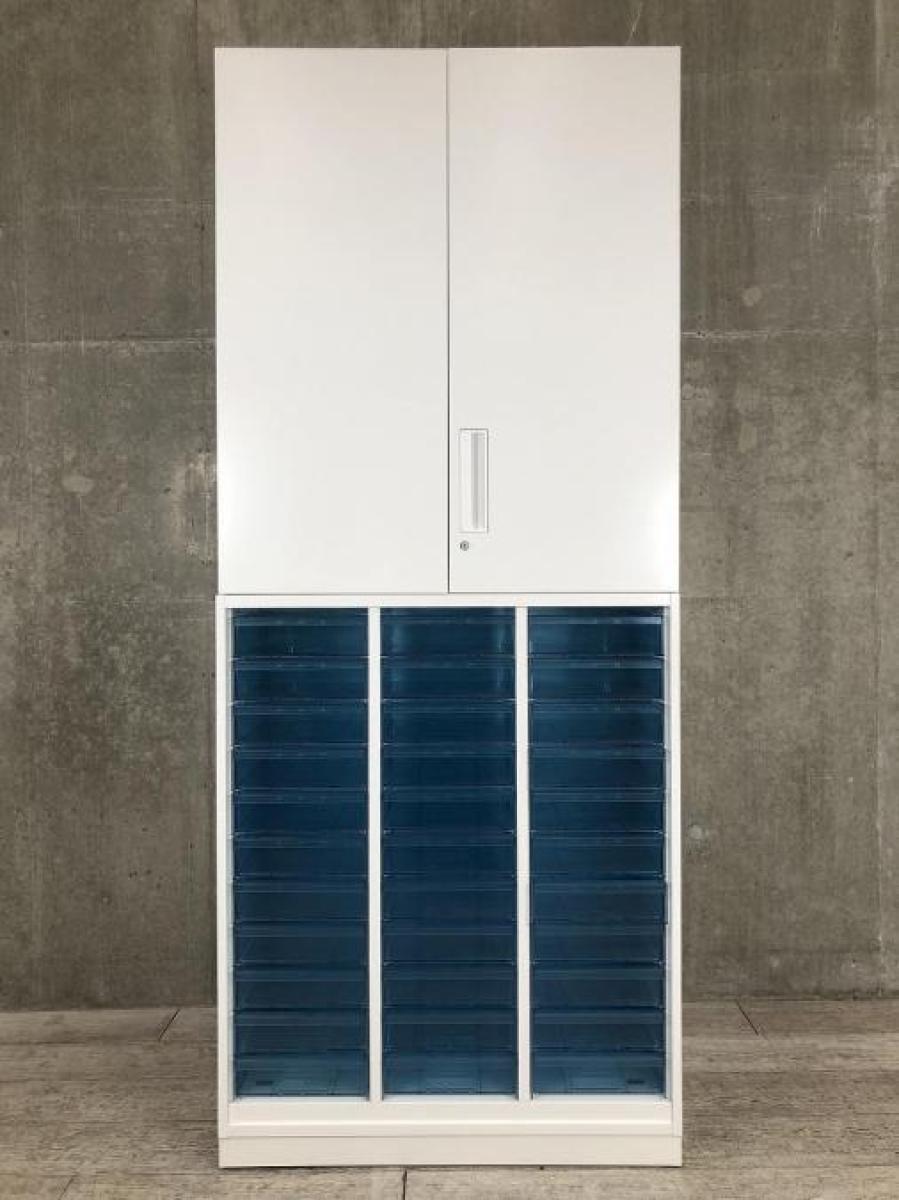 【両開き書庫とクリスタルトレイキャビネットの上下書庫セットの入荷です】 ■コクヨ/エディア/ホワイト 両開き+クリスタルトレー 深型3列11段 計33段在庫がある店舗一覧