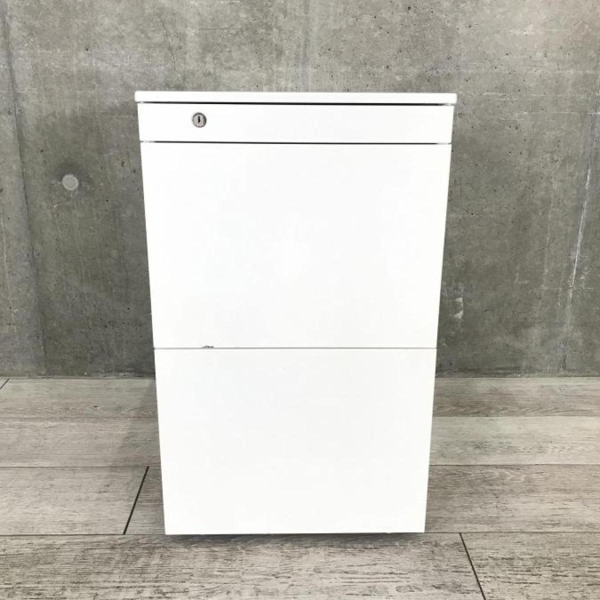 【正面に取っ手が無いフラットなデザイン!キャスター付でレイアウト変更がスムーズ!】■オカムラ(okamura)製 プロユニットシリーズ 3段ワゴン フリアド用ワゴン H650㎜ ■ホワイト ■シリンダー錠 ※キズ・塗装剝がれ有【弊社使用欄:A01042240】