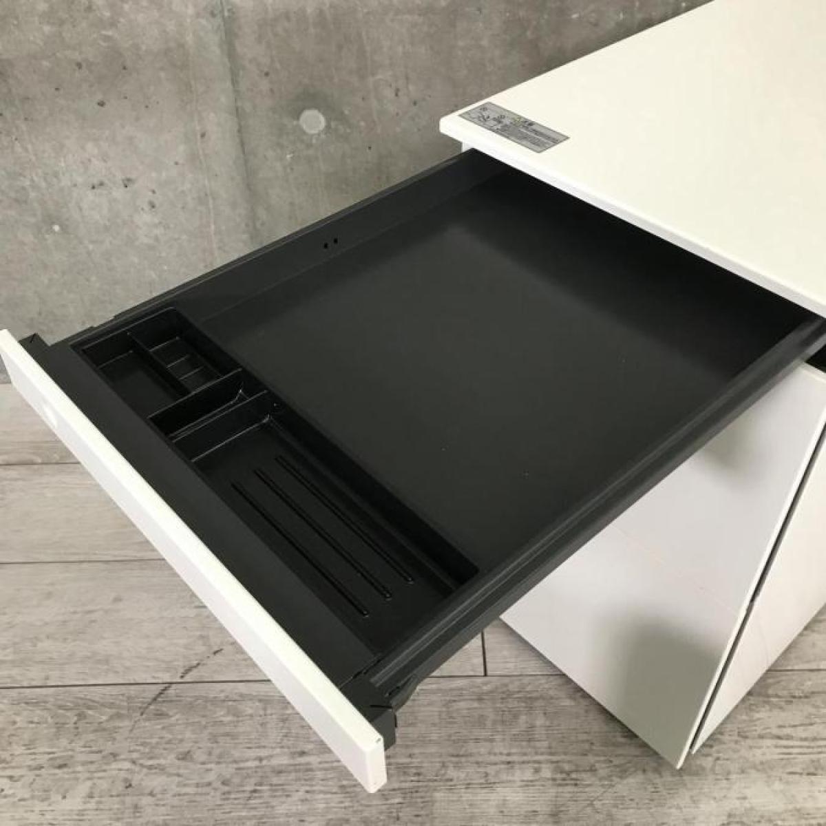 【正面に取っ手が無いフラットなデザイン!キャスター付でレイアウト変更がスムーズ!】■オカムラ(okamura)製 プロユニットシリーズ 3段ワゴン フリアド用ワゴン H650㎜ ■ホワイト ■シリンダー錠 ※キズ・塗装剝がれ有