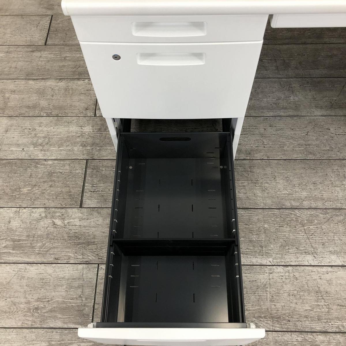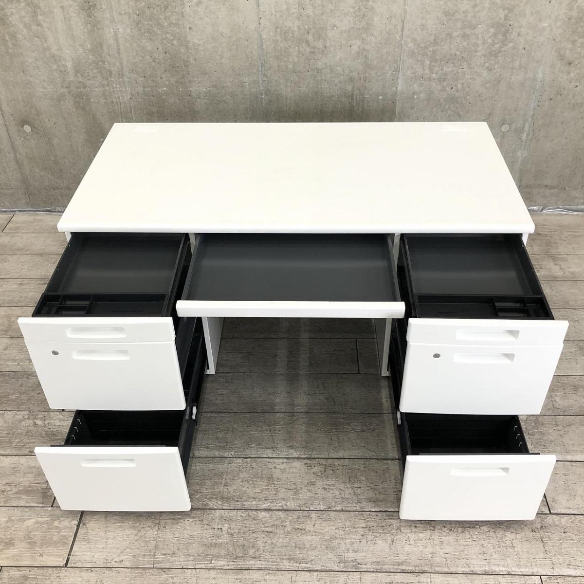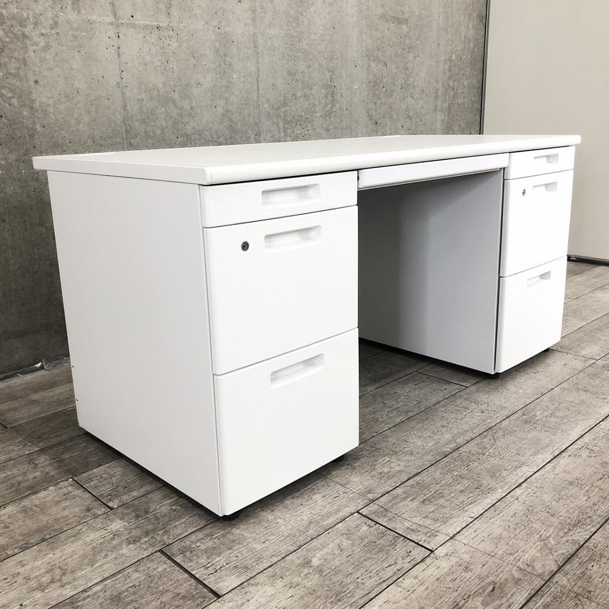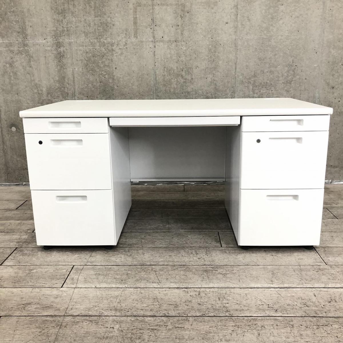 【充実のワークスペース!豊富な引出しで机上をスッキリ整理!】■コクヨ(KOKUYO)製 BS+シリーズ 両袖デスク W1400mm ■ホワイト ■シリンダー錠- 新大阪店