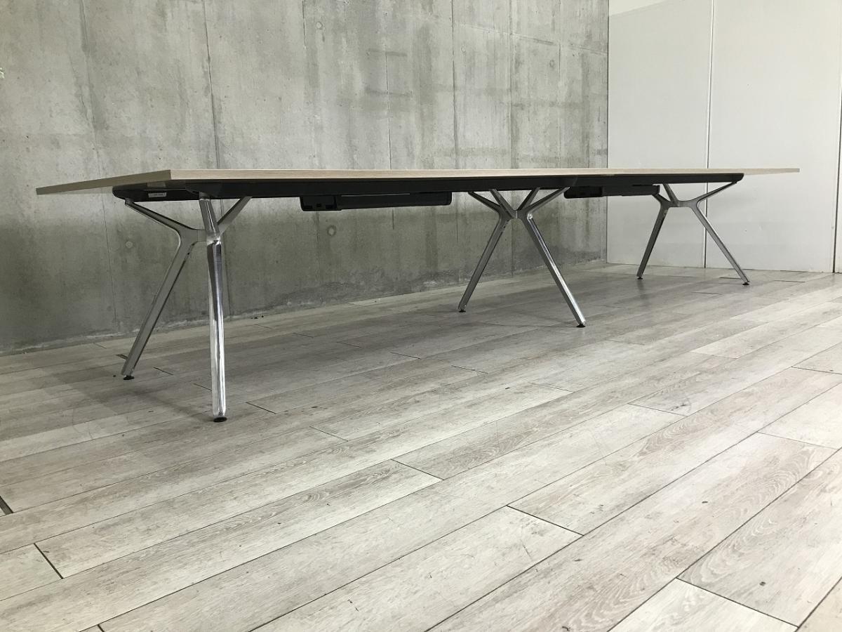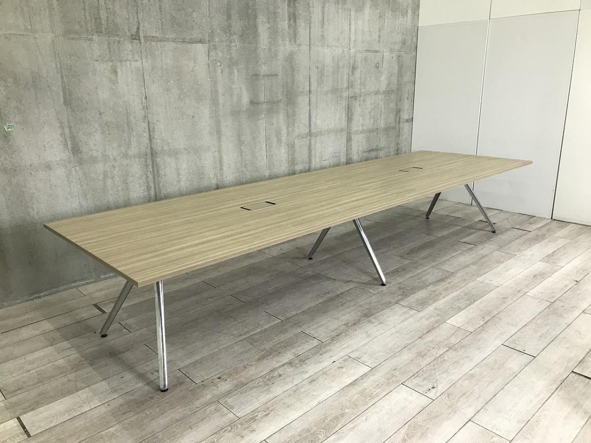 【幅4000㎜・洗練された上質なデザインの大型テーブル!】■イトーキ(ITOKI)製 DZシリーズ 会議用テーブル ミーテイングテーブル W4000×D1200㎜ ■配線口あり ■木目調ナチュラル天板 ※2枚天板のため搬入もしやすい!- 茨城南店