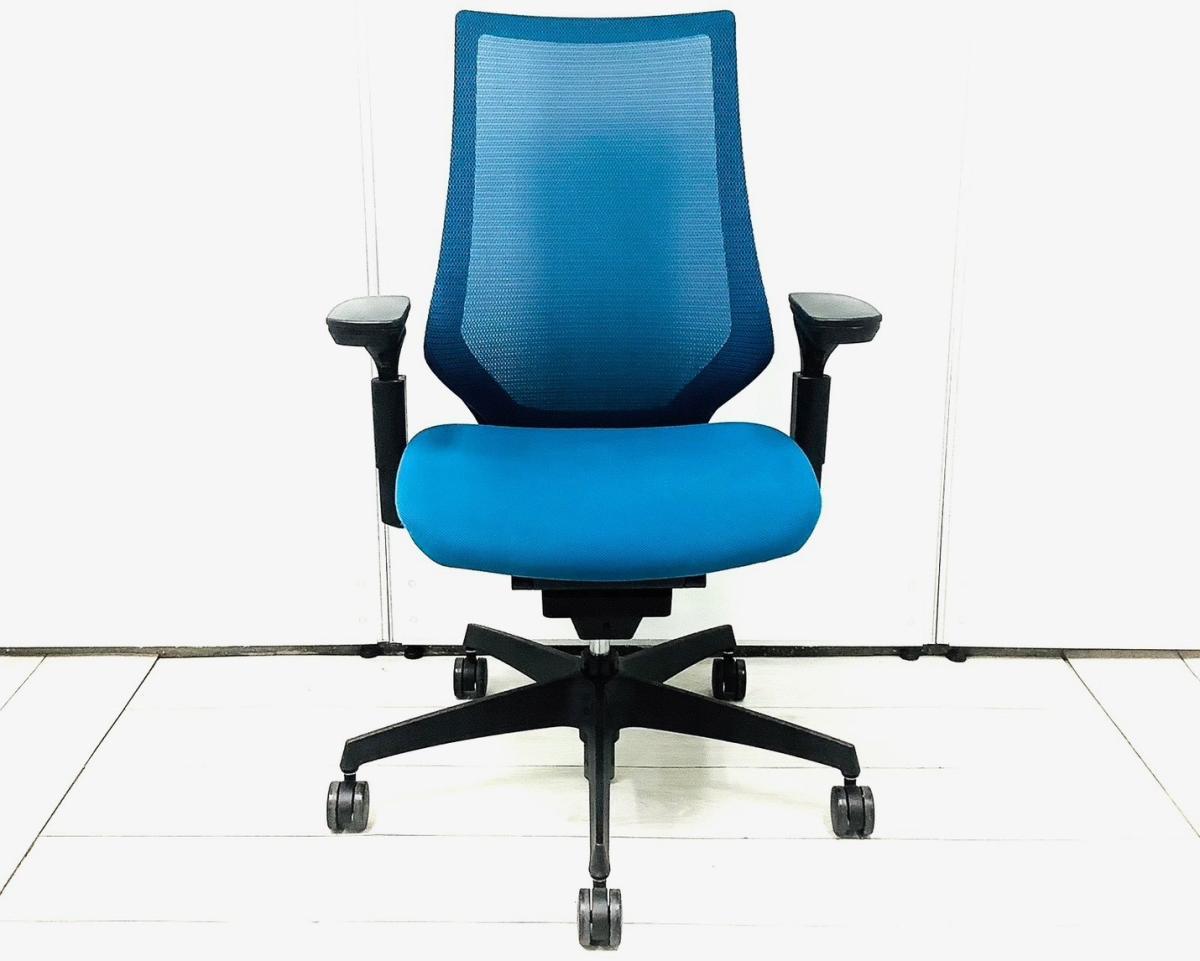 様々な姿勢にジャストフィット!高機能ワーキングチェア!体格差に応じた最適サポートを実現! ■コクヨ/デュオラチェア(Duora)/ブルー 可動肘付サーキュラーバリューCO2削減量の算出について
