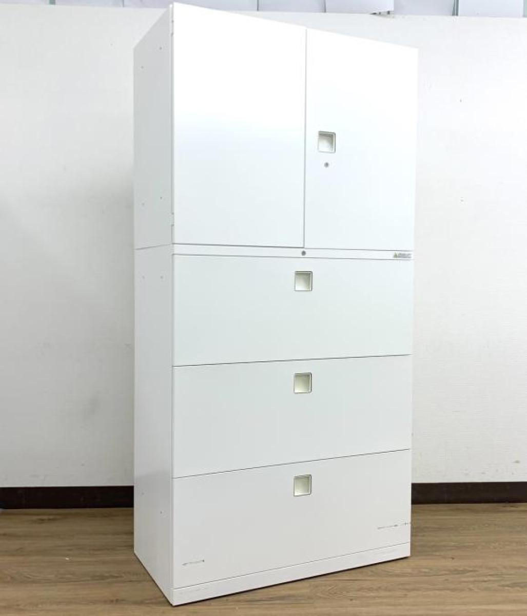 収納量とサイズ感を掛け合わせた高さ1810㎜の上下書庫セット!設置しやすいサイズ感となります! ■オカムラ/レクトライン/ホワイト 両開き+3段ラテラル- 立川・八王子店
