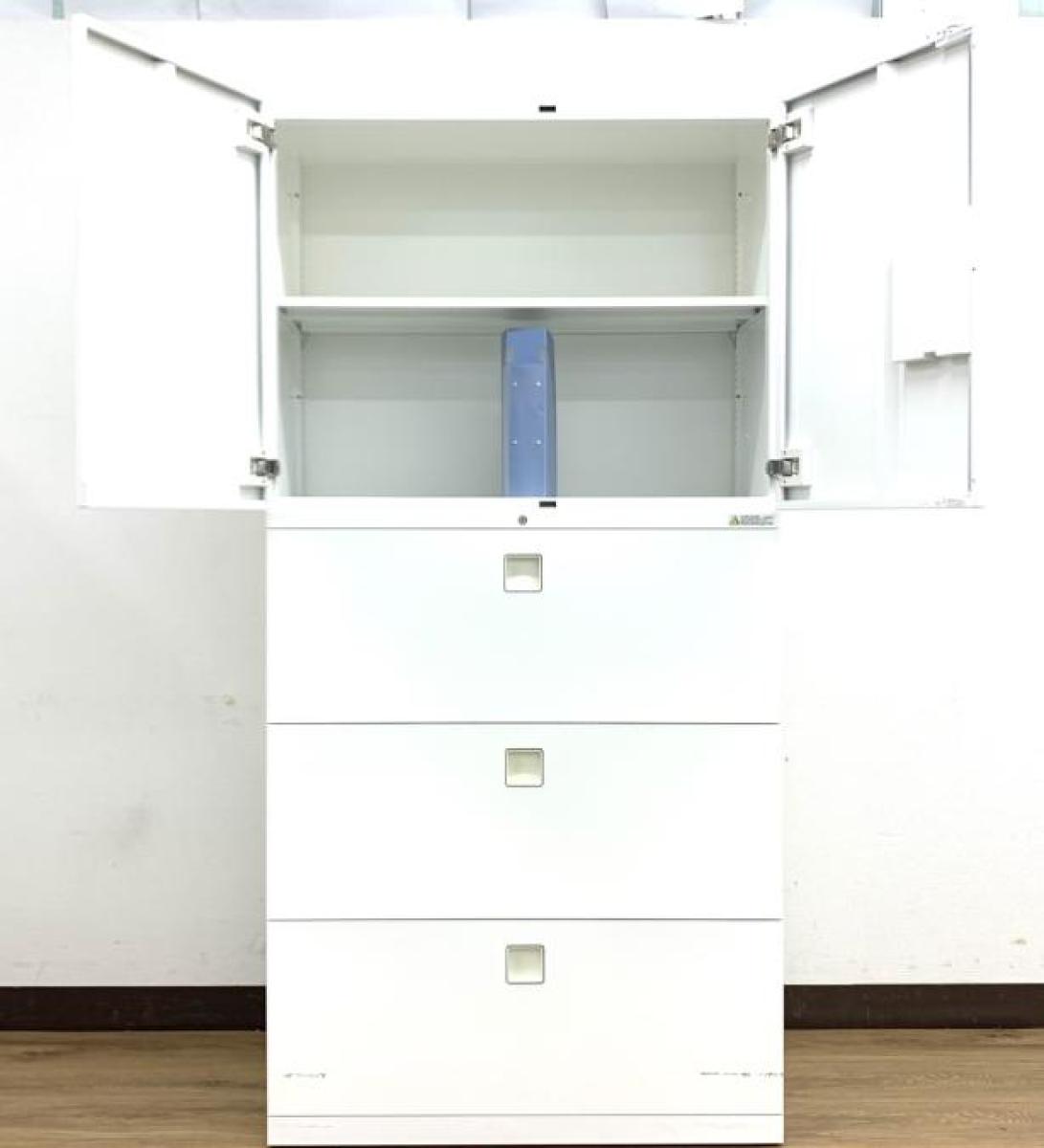 オカムラ レクトライン 3段ラテラル+両開き扉の書庫セット ホワイト シリンダー錠 鍵お付けします 人気商品