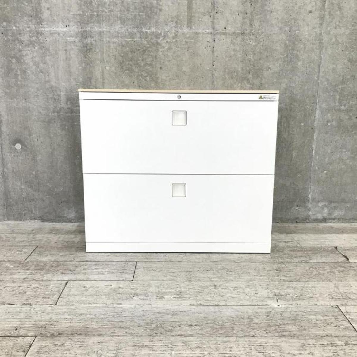 【ファイル収納にオススメ!高品質で使いやすい人気シリーズの3段ラテラル書庫!】■オカムラ(okamura)製 レクトラインシリーズ 3段ラテラル書庫 ローキャビネット H1100㎜ ■ホワイト ■シリンダー鍵 ■天板付き(天板:ホワイト) ※日焼け有