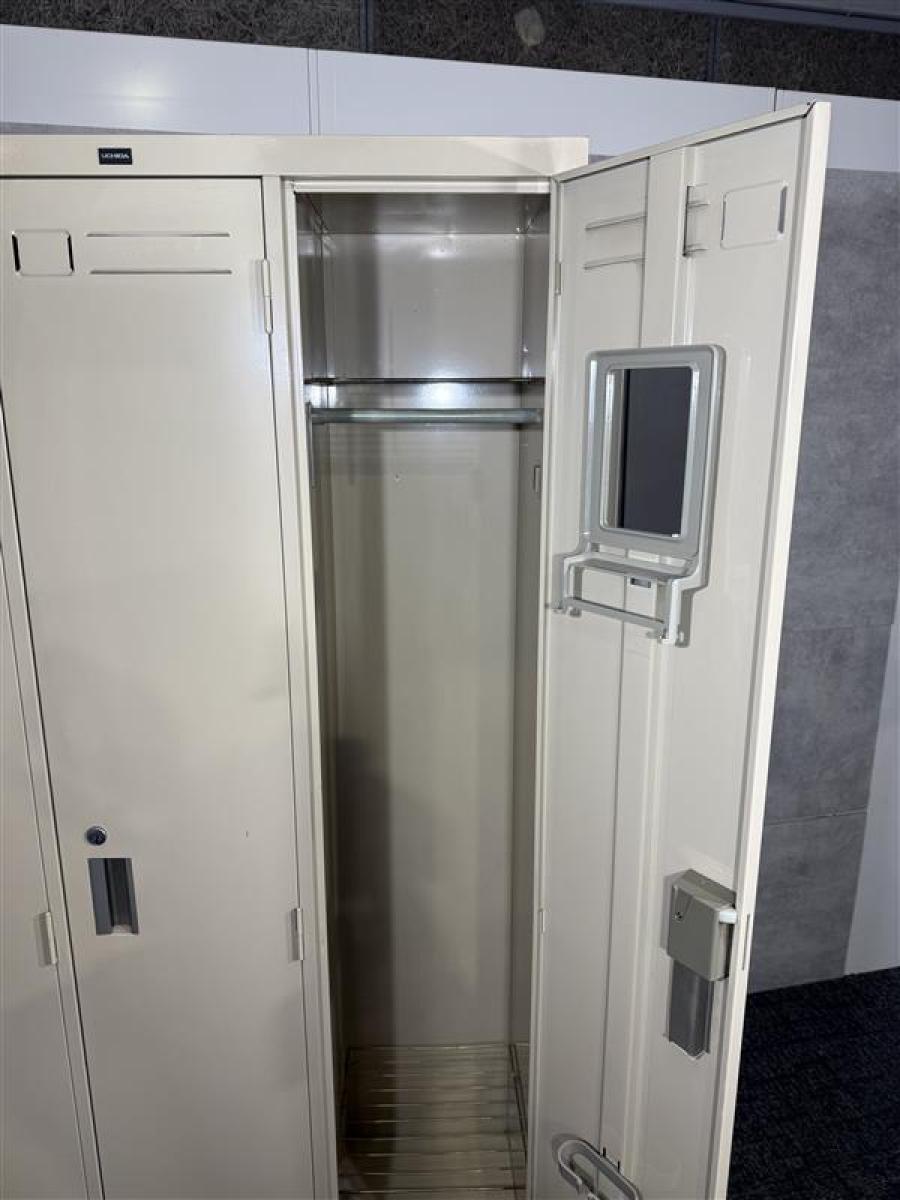 【シンプルでスタンダードな更衣ロッカー!移転や増員を検討されている方にオススメ!常に人気の高い更衣用ロッカー】■内田洋行(UCHIDA)製 3人用更衣ロッカー W900×D515㎜ アイボリー 収納 シリンダー錠 中古家具 格安 福岡 オフィス家具 九州最大級《オフィスバスターズ福岡博多店は、福岡を拠点として、日本全国へ中古オフィス用品・オフィス家具を提供しております》- 福岡博多店