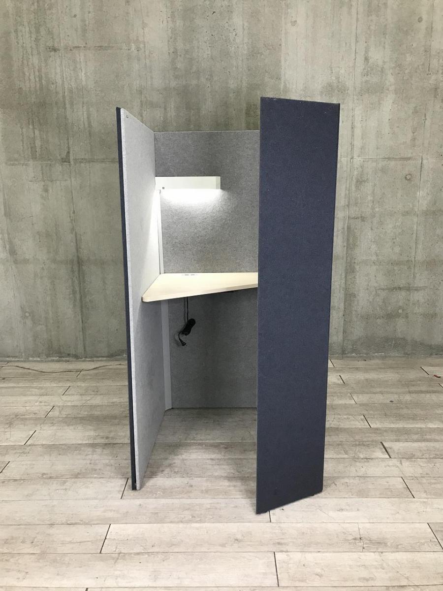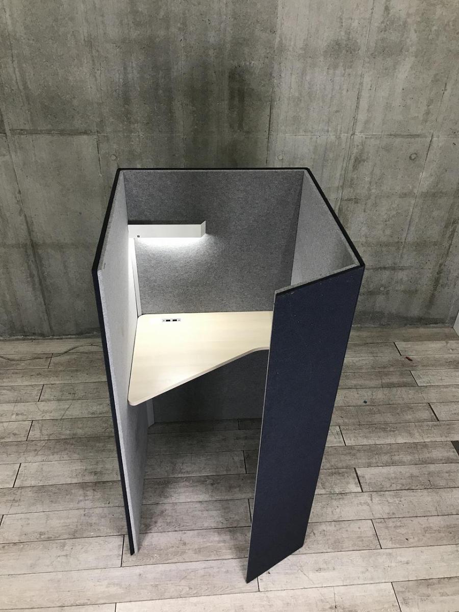 【右開口】【ワーカーの集中を高める省スペースなワークブースが入荷!】■オカムラ(okamura)製 ドレープシリーズ(drape) テトラタイプ 1人用ブース ソロワークブース (W1000/D1000/H1900) ■色:ネイビー × グレー ■ライトつき【ABW商材】【関東倉庫在庫品】【弊社使用欄:A01017260】