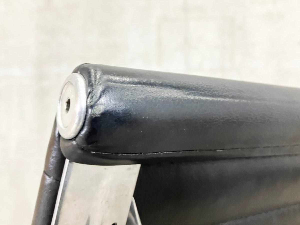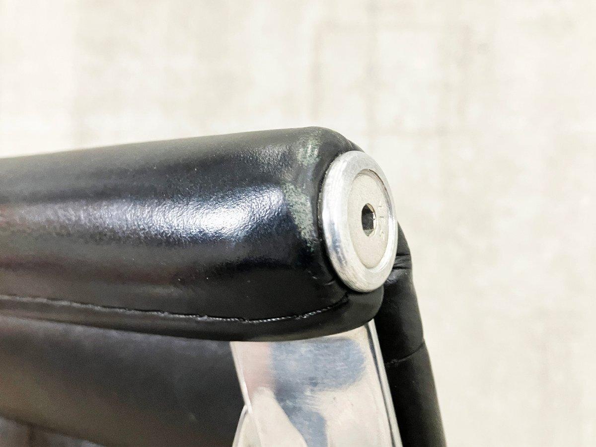 ミッドセンチュリーを象徴するエレガントなアルミフレームに、引き締まったブラックのスリングシートが映える一脚です。