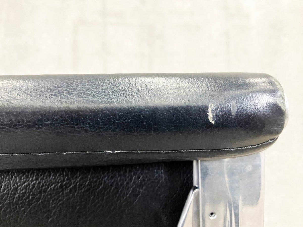 ミッドセンチュリーを象徴するエレガントなアルミフレームに、引き締まったブラックのスリングシートが映える一脚です。