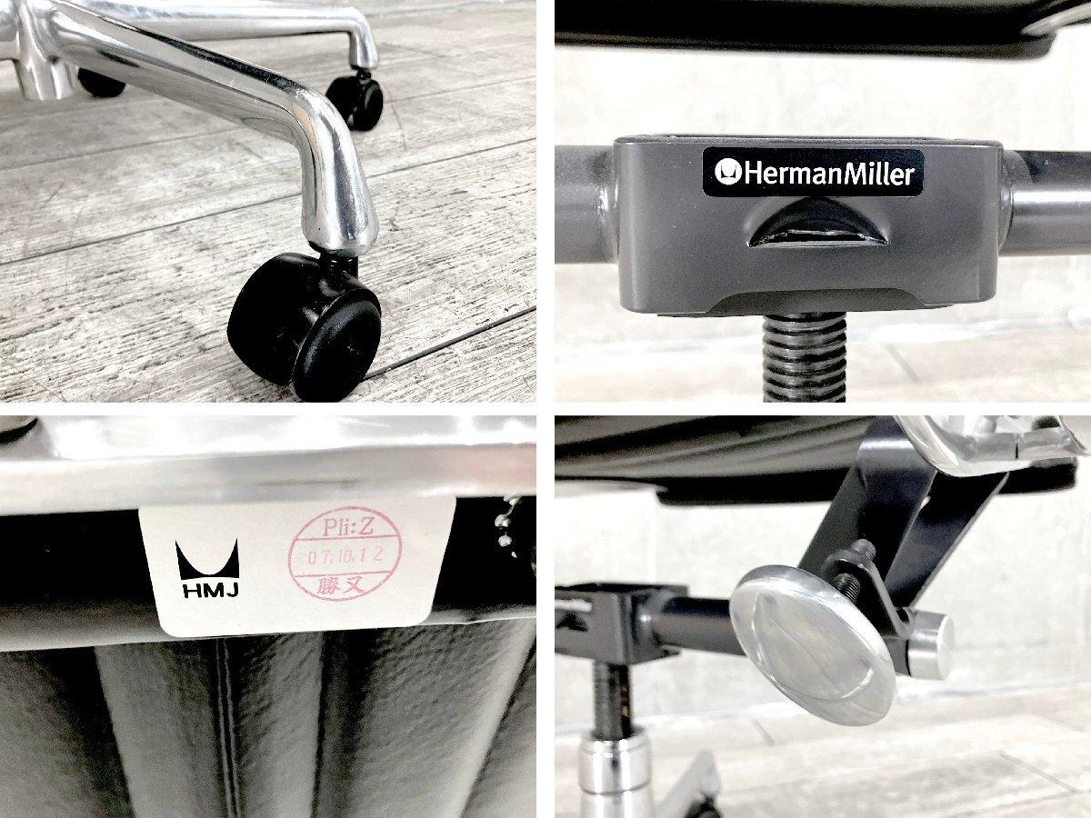 ハーマンミラー社「アルミナムグループ」のマネジメントチェア、ブラックレザーの5本脚キャスターベース仕様。