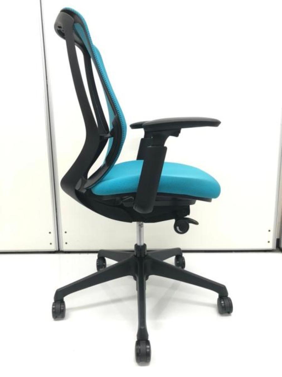 《現物写真だから安心!》オカムラ製の人気オフィスチェア【シルフィーメッシュ/可動肘/ヘッドレスト付き/ブルーグリーン】が先着1名様ご案内可能です!