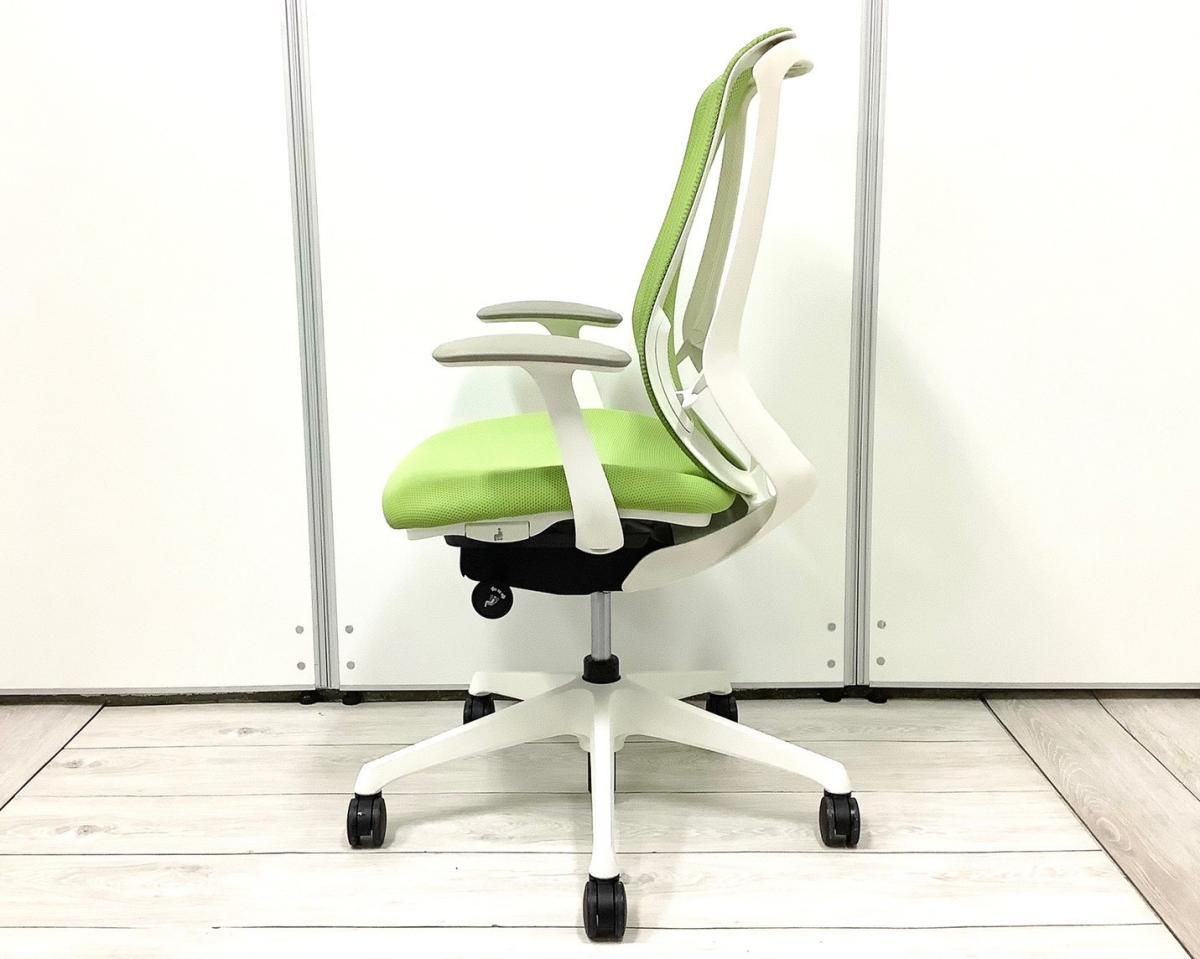 【前傾チルト機能付き】オカムラ製品で最も人気を集める高機能メッシュチェア!/オススメ(おすすめ) /人気商品【弊社使用欄:A01036032】■肘付き ハイバック 背面メッシュ ■可動肘 ■ライムグリーン×ホワイトシェル/オカムラ(okamura)製 シルフィ(Sylphy)