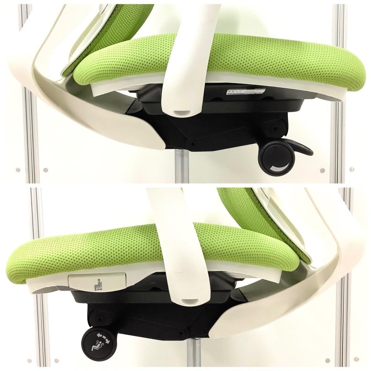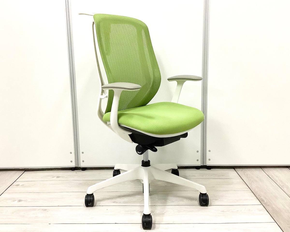 【前傾チルト機能付き!オカムラ製品で最も人気を集める高機能メッシュチェア!】■オカムラ(okamura)製 シルフィ(Sylphy)チェア ハイバック 肘付き ■可動肘 ■ライムグリーン × ホワイトシェル【状態良好品!】