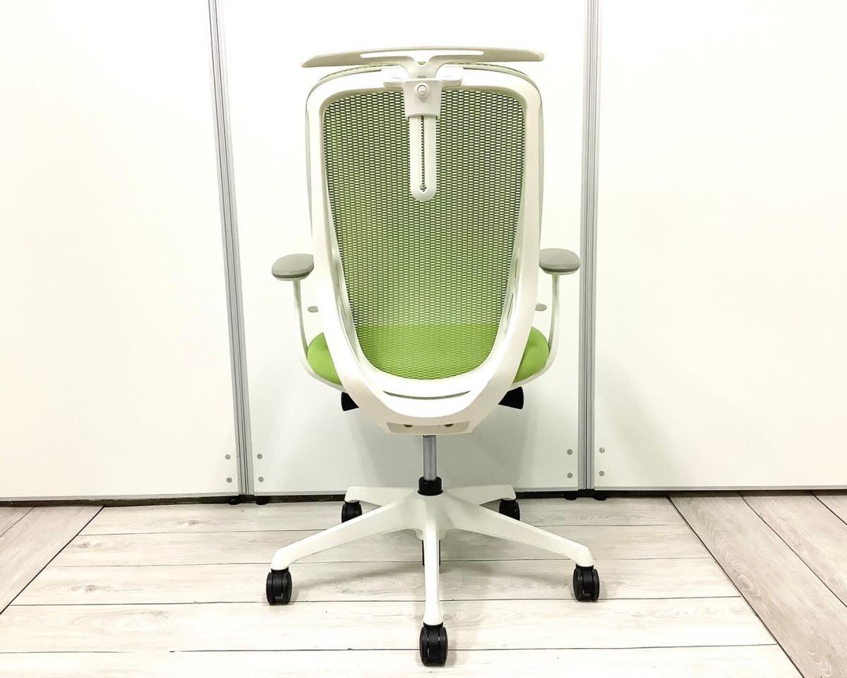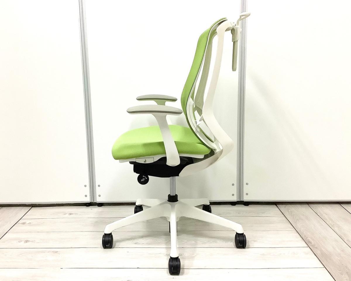 【前傾チルト機能付き】【オカムラ製品で最も人気を集める高機能メッシュチェア!】■オカムラ(okamura)製 シルフィ(Sylphy) 肘付き ハイバック 背面メッシュ ■可動肘 ■ライムグリーン×ホワイトシェル