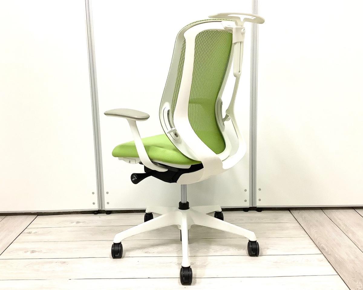 【前傾チルト機能付き!オカムラ製品で最も人気を集める高機能メッシュチェア!】■オカムラ(okamura)製 シルフィ(Sylphy)チェア ハイバック 肘付き ■可動肘 ■ヘッドレスト付き ■ライムグリーン × ホワイトシェル ※実際の商品はヘッドレスト部分のみブラックカラーとなります。