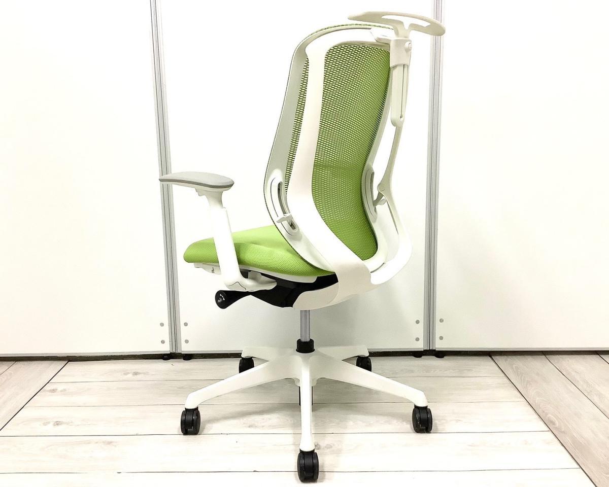 【前傾チルト機能付き!オカムラ製品で最も人気を集める高機能メッシュチェア!】■オカムラ(okamura)製 シルフィ(Sylphy)チェア ハイバック ■可動肘・ハンガー付き ■ライムグリーン × ホワイトシェル