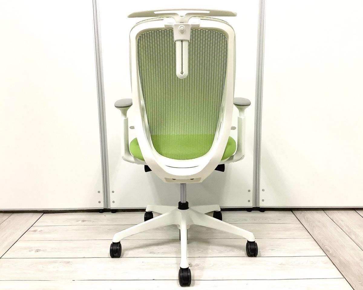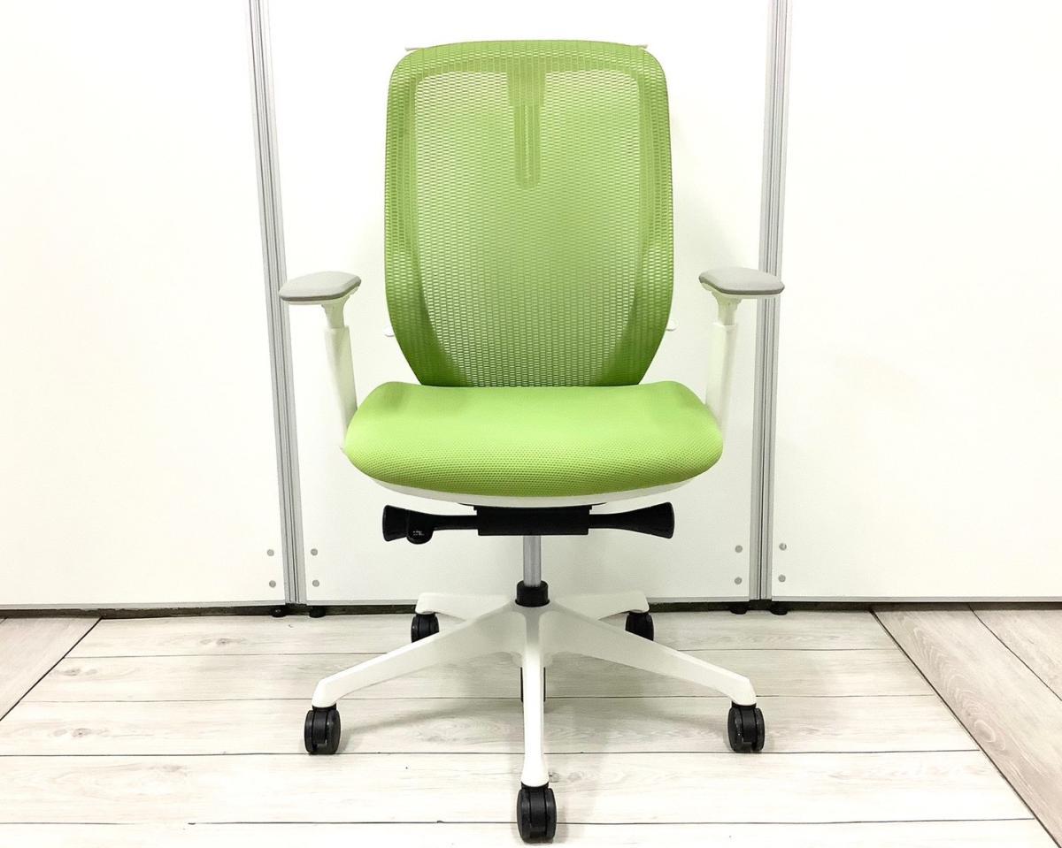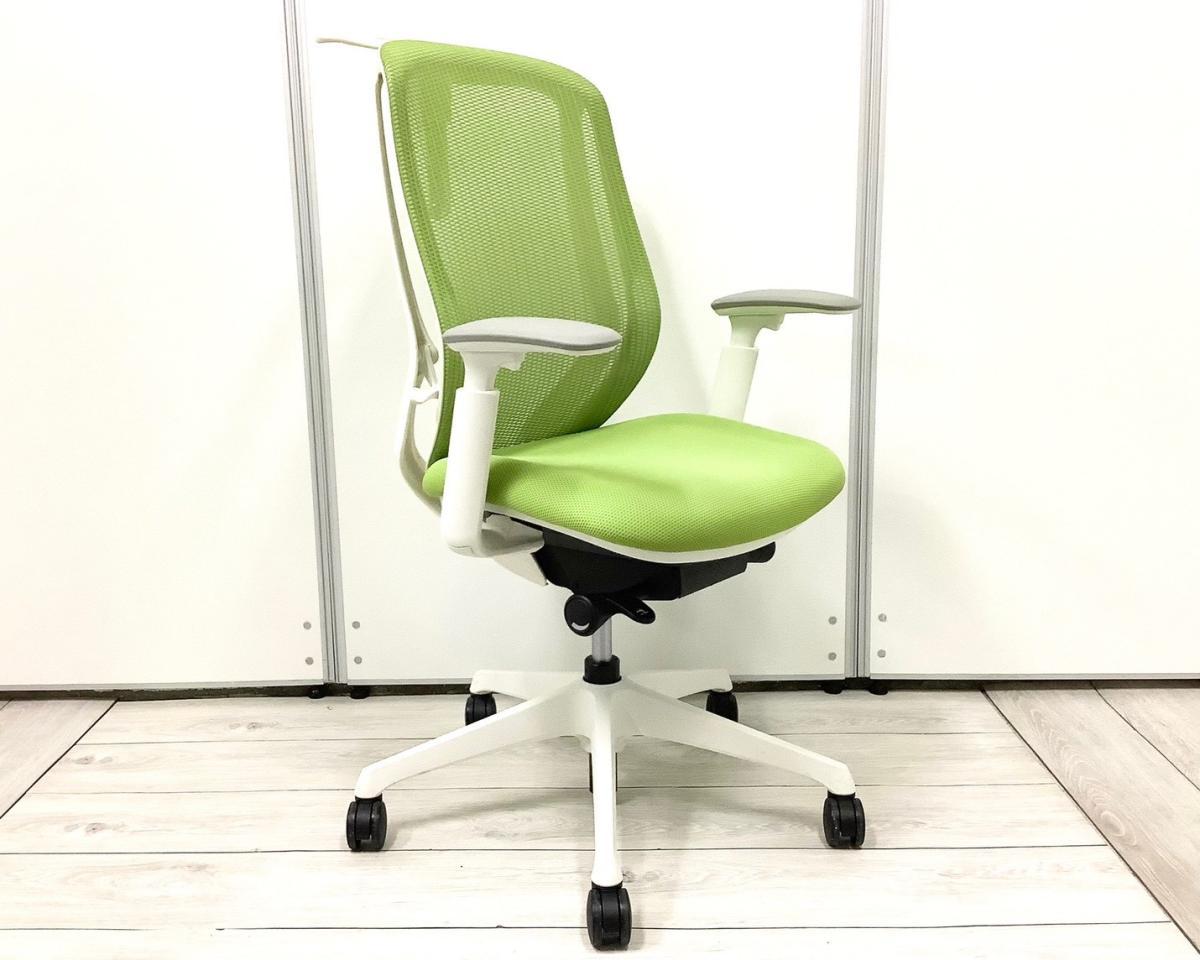 【前傾チルト機能付き!オカムラ製品で最も人気を集める高機能メッシュチェア!】■オカムラ(okamura)製 シルフィ(Sylphy)チェア ハイバック 肘付き ■可動肘 ■ライムグリーン × ホワイトシェル【状態良好品!】