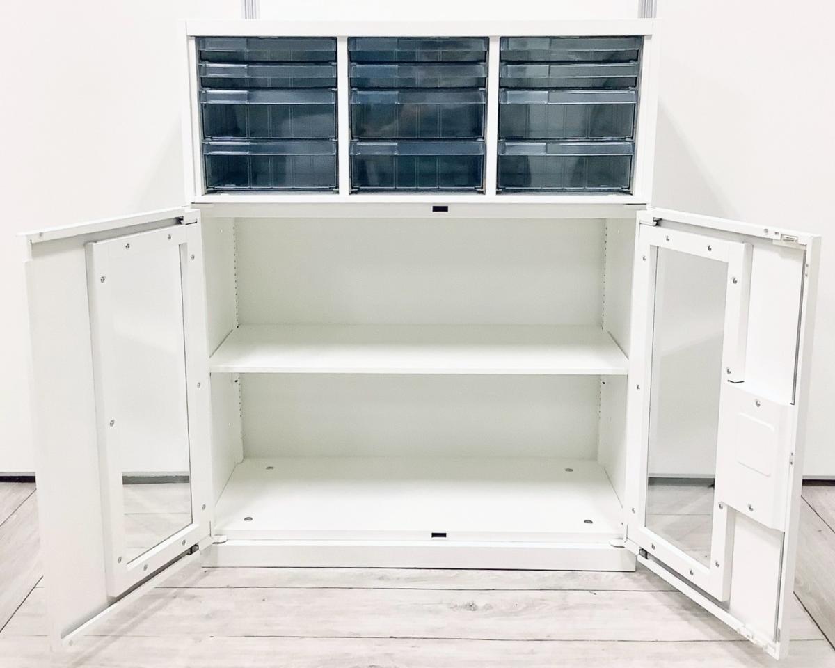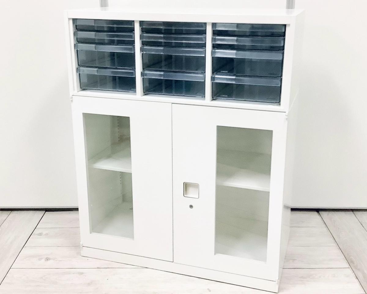 【中古】 レクトライン 4B09AD-ZA75+4B31GF-ZA75 オカムラ/okamura ローキャビネット/クリスタルトレー 560235