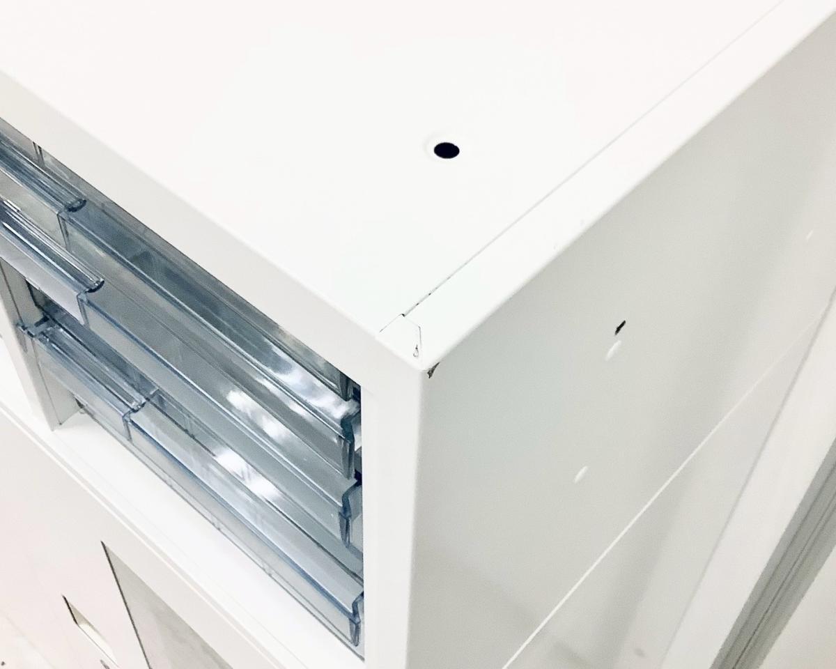 【※一か所引出し割れ有り】【希少なクリスタルキャビネット!細かい書類整理の仕分けに!】■okamura オカムラ クリスタルトレー 浅型24×3列 ■本体ホワイト×ナチュラル天板 〈岐阜・愛知・三重・静岡・福井〉