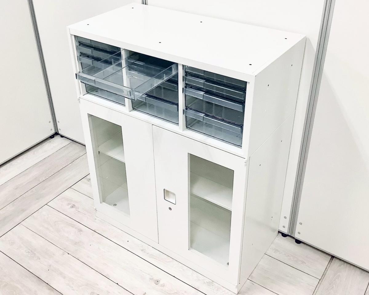 【書類・備品整理の必需品!書類や備品のストックにピッタリ!※1段目のみ浅型仕様】オカムラ レクトライン クリスタルトレー 書類 引き出し 透明 ケース ローキャビネット 整理 中古家具 オフィス家具 福岡 九州最大級《オフィスバスターズ福岡博多店は、福岡を拠点として、日本全国へ中古オフィス用品・オフィス家具を提供しております》