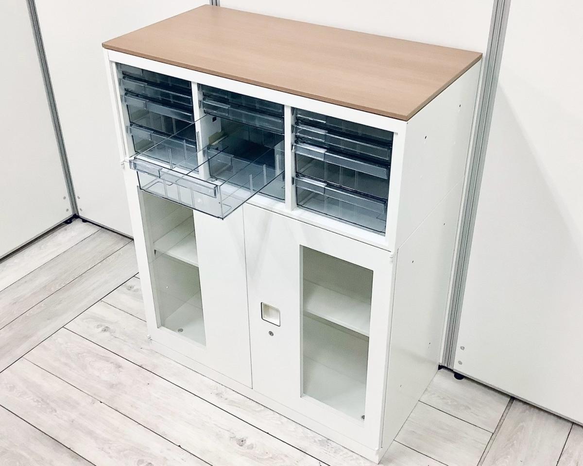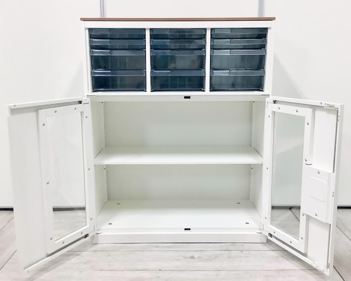 【中古】 レクトライン 4B09AD-ZA75+4B31GF-ZA75 オカムラ/okamura ローキャビネット/クリスタルトレー 560237