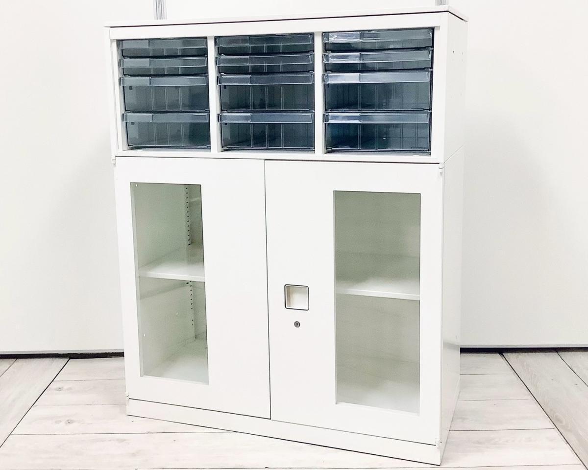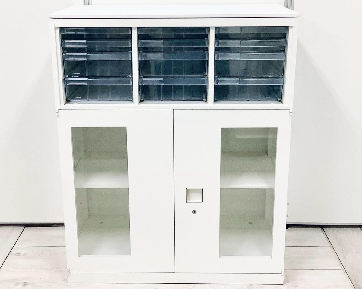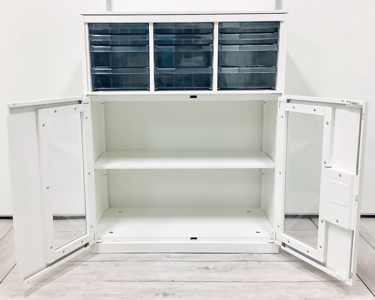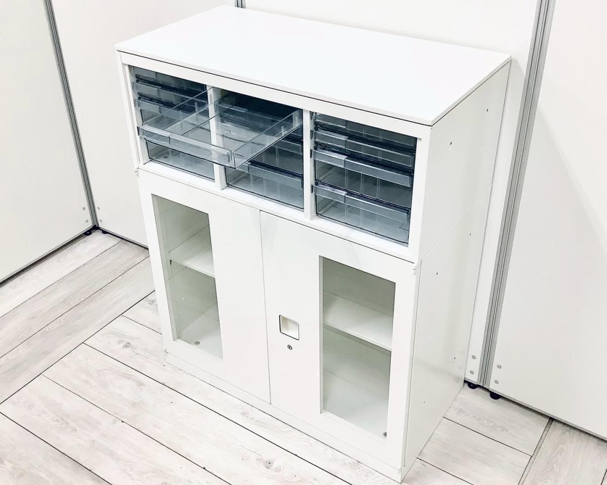【中古】 レクトライン 4B09AD-ZA75+4B31GF-ZA75 オカムラ/okamura ローキャビネット/クリスタルトレー 560238