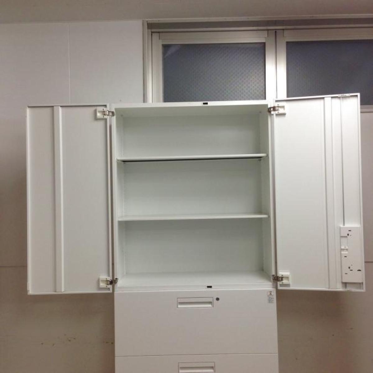 【収納量抜群の書庫セット!観音開き+引き出しタイプの人気の組み合わせ!】■コクヨ(KOKUYO)製 エディアシリーズ(EDIA) 両開き+3段ラテラル 書庫セット ハイキャビネット ■ホワイト ■シリンダー錠