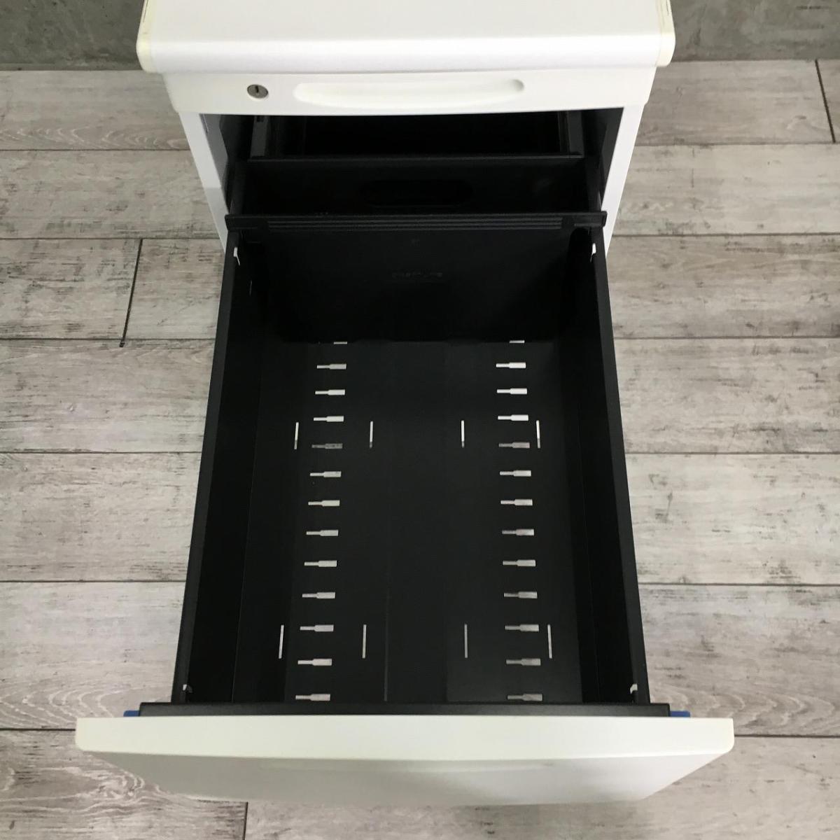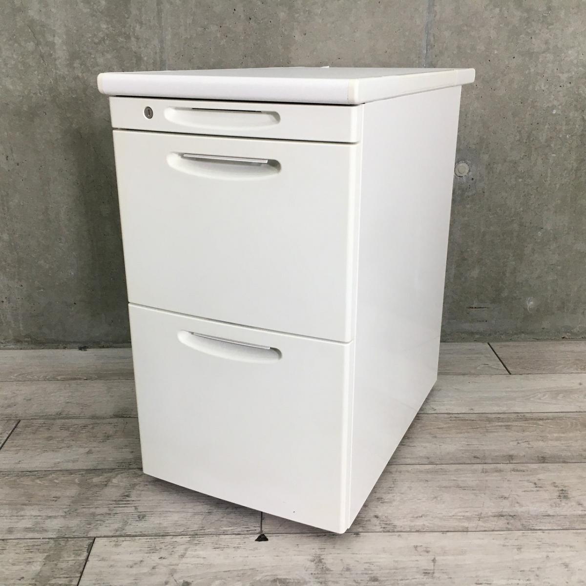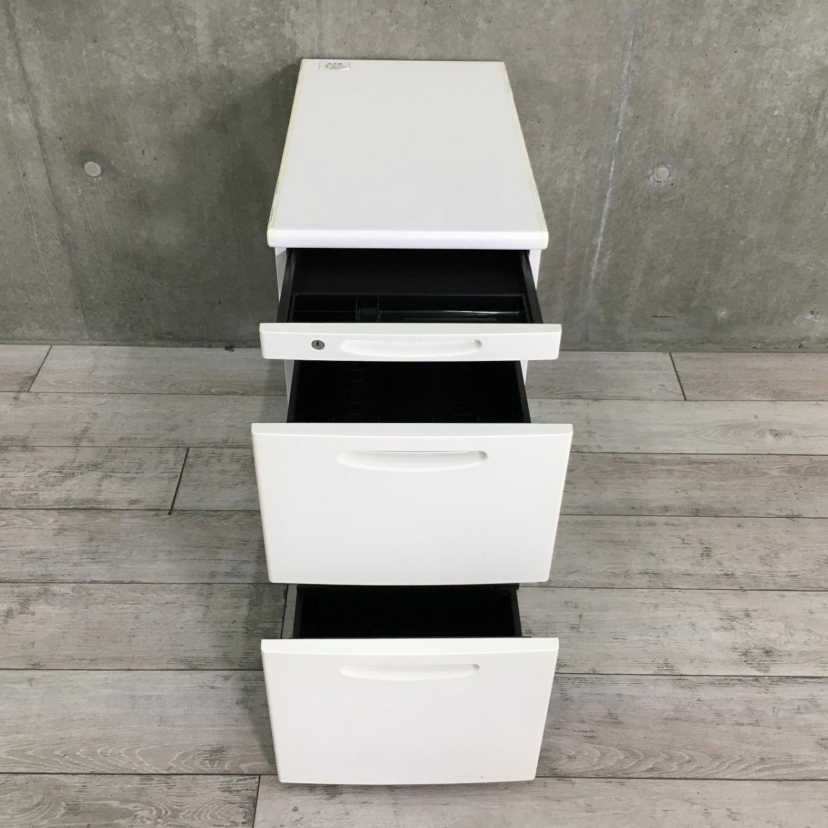 【定価約10万円】【収納と作業スペースを同時に確保できる3段脇机!】■オカムラ(okamura)製 SD-Vシリーズ 脇机3段 H700mm ■色:ホワイト ■シリンダー錠【弊社使用欄:A01046245】