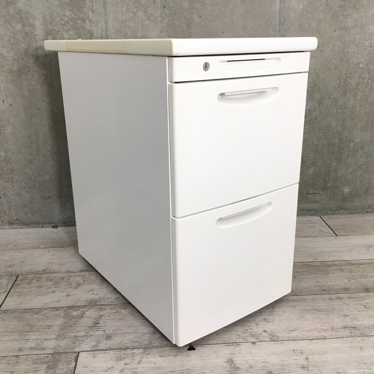 【定価約10万円】【収納と作業スペースを同時に確保できる3段脇机!】■オカムラ(okamura)SD-Vシリーズ 脇机3段 H700mm ■色:ホワイト ■シリンダー錠- 千葉店