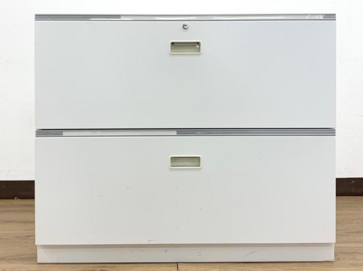 【珍しい2段ラテラルタイプ!】耐久性・機能性を兼ね備えたキャビネット!スペースにジャストフィットする引き出し型収納 ■イトーキ/シンライン/ホワイト シリンダー錠