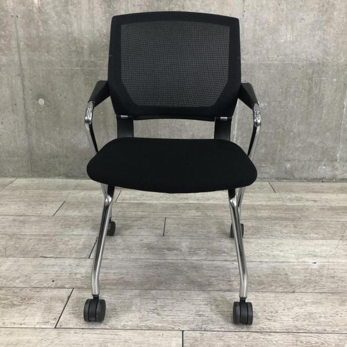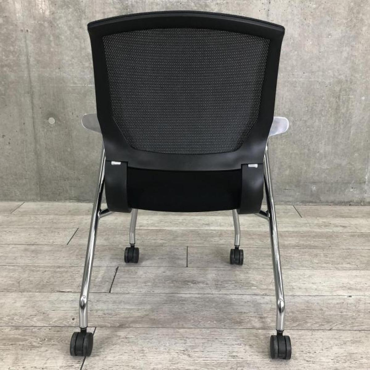 【背にフィットする快適メッシュ!横に積めて収納できるネスティングチェア!】■コクヨ(KOKUYO)製 サテリテチェア 肘付ミーティングチェア ■キャスター付 ■背面メッシュ ■ブラック 【会議室・セミナールームにもおすすめ!】- 茨城南店