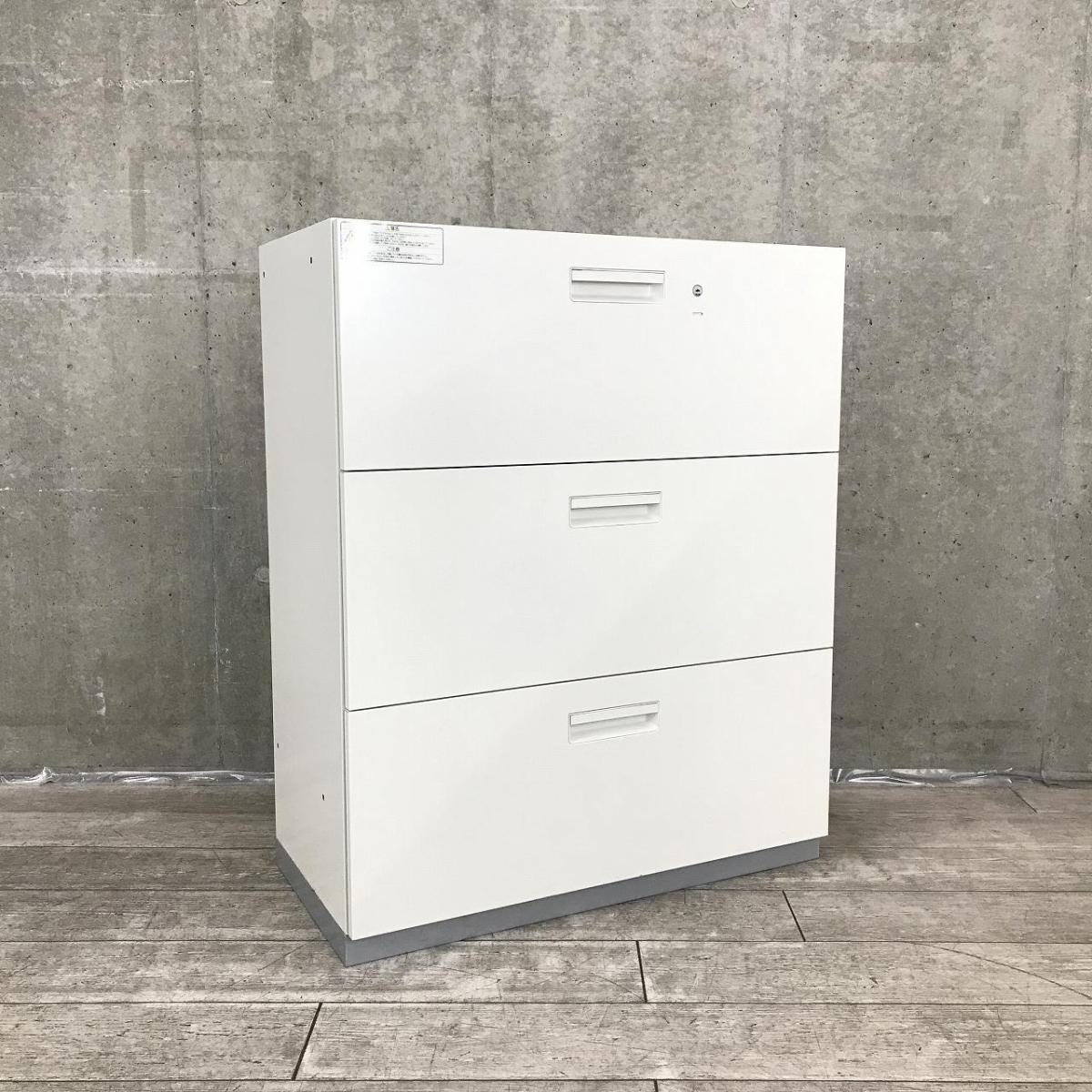 ★【T12】【商品入替のため、残り2台限り】プラス(PLUS)製 L6 ホワイト シリンダー ローキャビネット オフィスで人気の必需品! 使いやすい引き出し式キャビネット! キングファイルなど収納におすすめ 3段ラテラル書庫!!