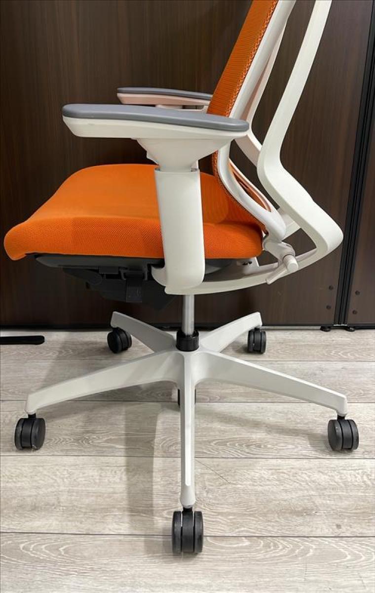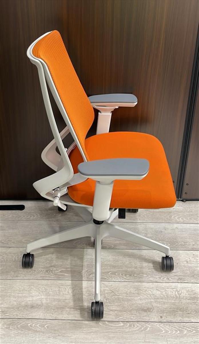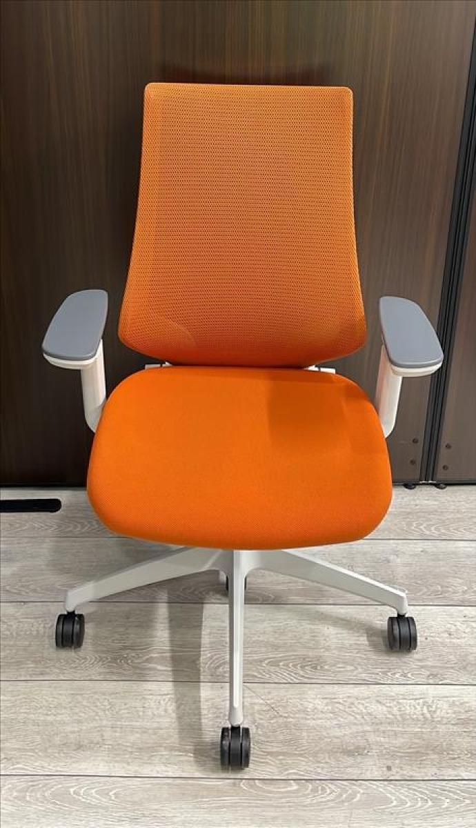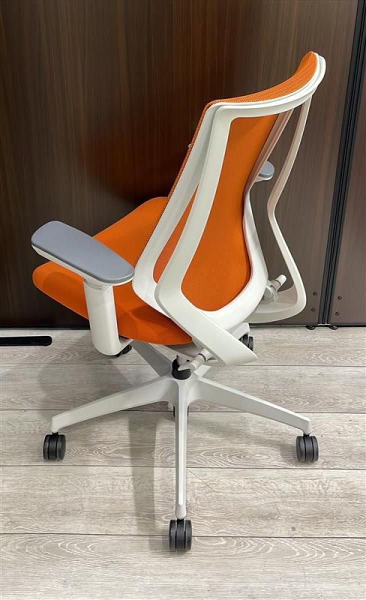 二重フレーム構造がもたらすしなやかで美しい背もたれ機能!簡易操作で自分に合った姿勢をサポート!活気を呼ぶオレンジカラー! ■コクヨ/デュオラ(Duora)/タンジェリン×ホワイトシェル 肘付きハイバック 背面メッシュ 可動肘- 立川・八王子店