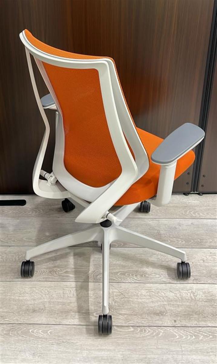 【二重フレーム構造がもたらすしなやかで美しい背もたれ機能!簡易操作で自分に合った姿勢をサポート!】■コクヨ(KOKUYO)製 デュオラ(Duora) 肘付ハイバック ■タンジェリン×ホワイトシェル ■背面メッシュ ■可動肘