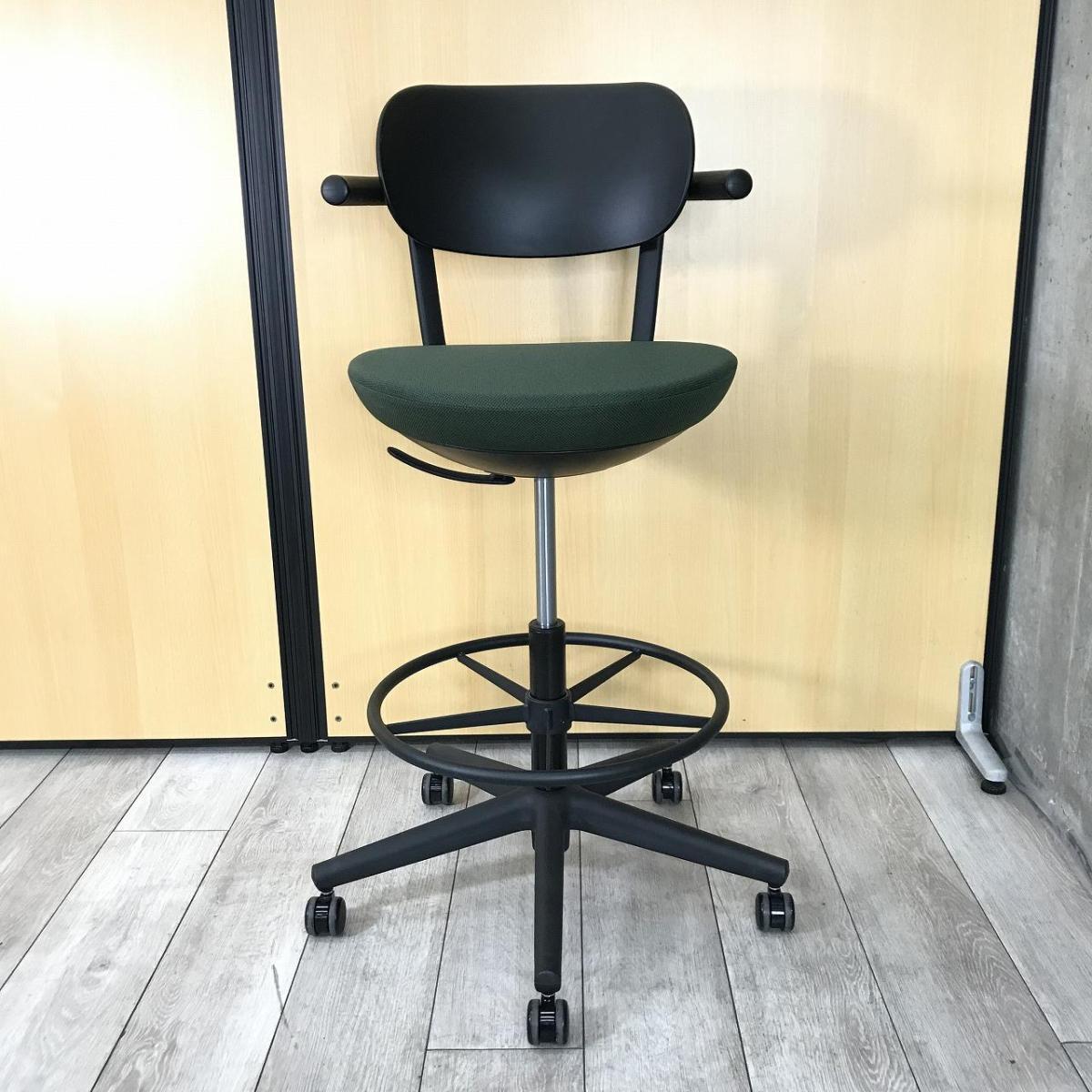 希少/レア/おすすめ コクヨ(KOKUYO)製 パロチェア(Pallo) 肘付き カウンターチェア ■昇降タイプ ■足掛け付 ■背面樹脂:ブラック/座面:グリーン- 千葉店