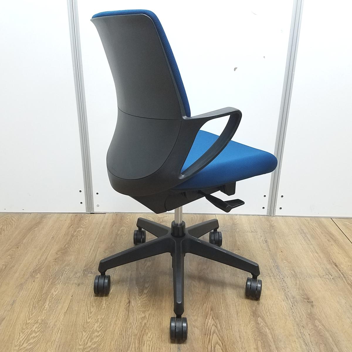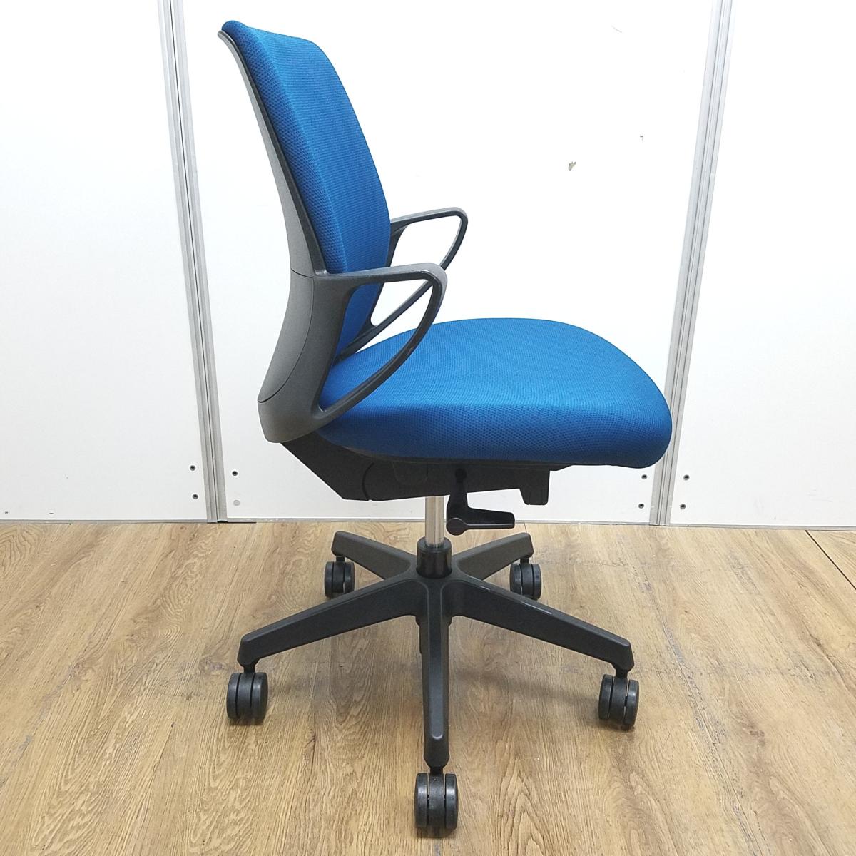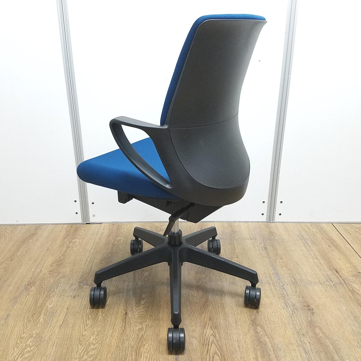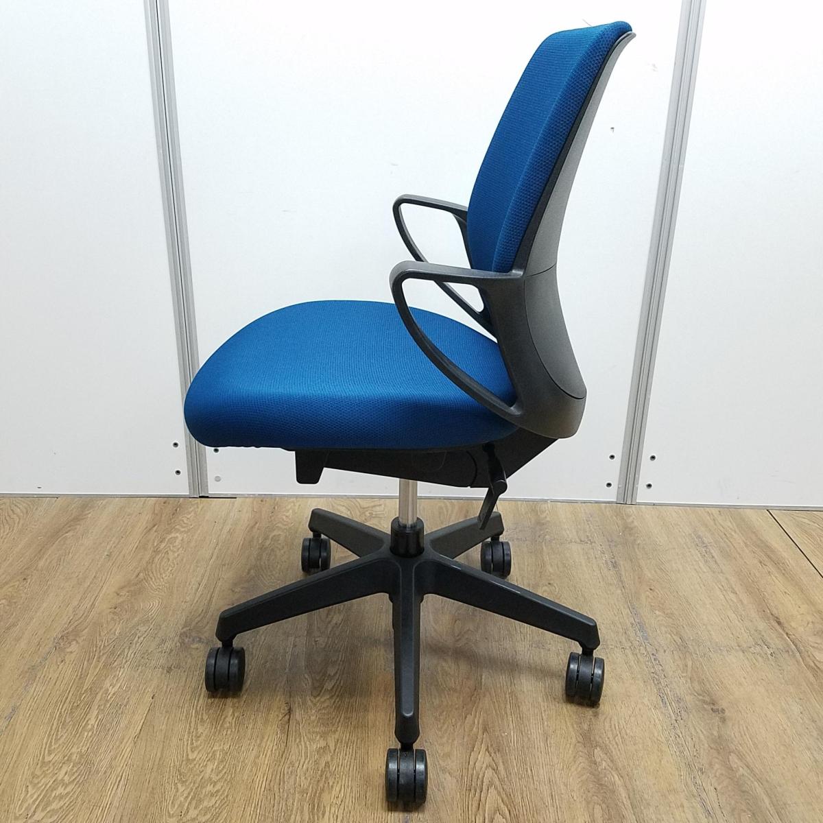 コクヨ製 ピコラ プルシアンブルー ブラックフレーム 肘付き ローバック オフセットアーム※固定肘 デスクにスッキリ収納できるコンパクト設計! スマートなデザインで使い勝手が良し! 肘付きローバックチェア!!- 京都東寺店