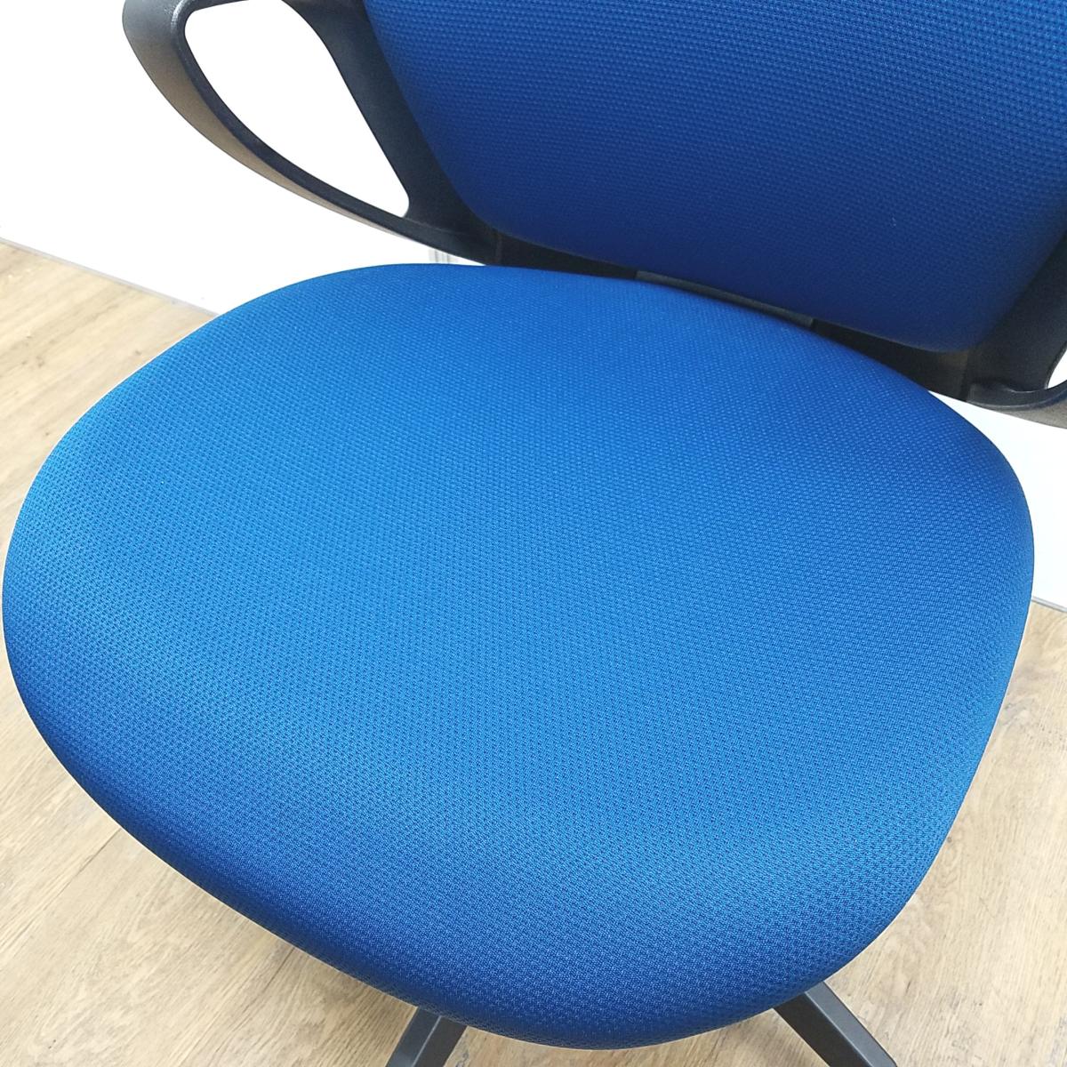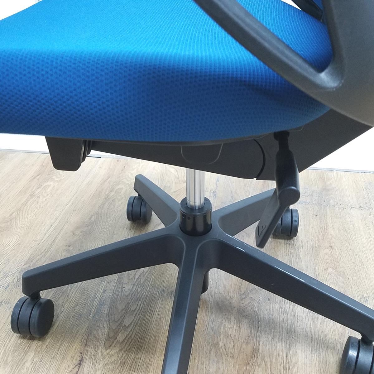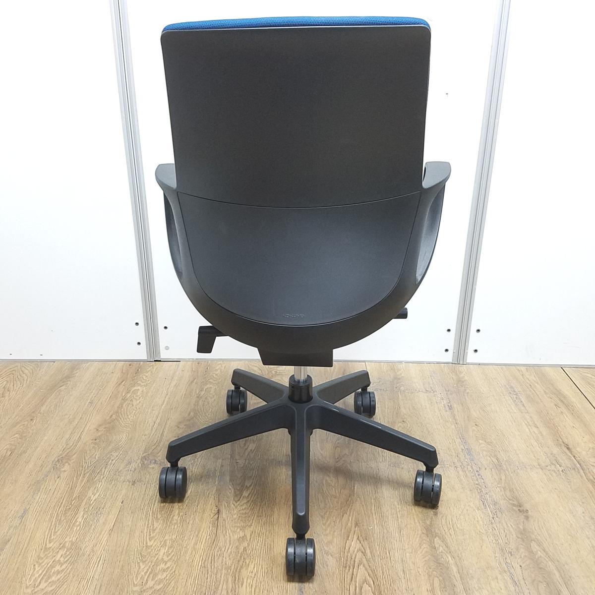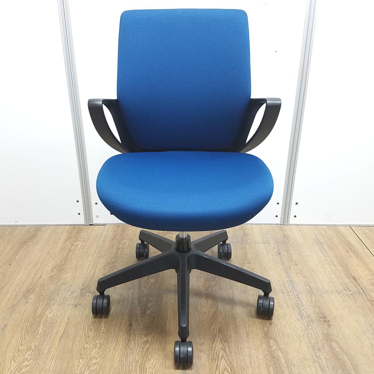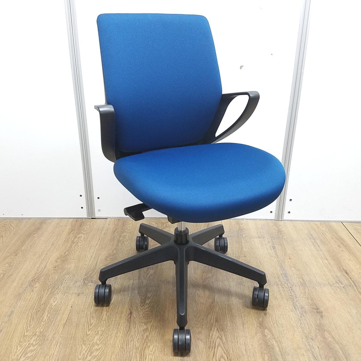 コクヨ製 ピコラ プルシアンブルー ブラックフレーム 肘付き ローバック オフセットアーム※固定肘 デスクにスッキリ収納できるコンパクト設計! スマートなデザインで使い勝手が良し! 肘付きローバックチェア!!- 京都東寺店