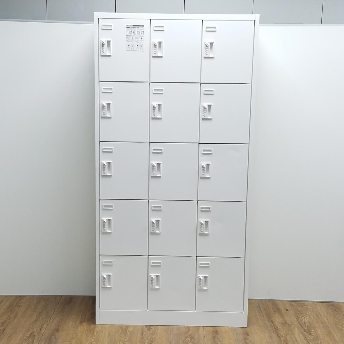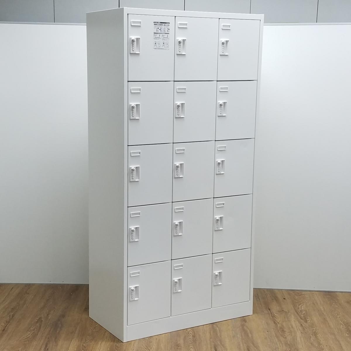 オカムラ製 FZシリーズ ホワイト W900xD515x1790サイズ ダイヤル式 15人用ロッカー 増員にも!これ1台で15人分の収納力! 鍵の持ち運びいらずのダイヤル錠タイプ! 15人用更衣ロッカー!!※非常解除キーは付属しておりません。- 京都東寺店