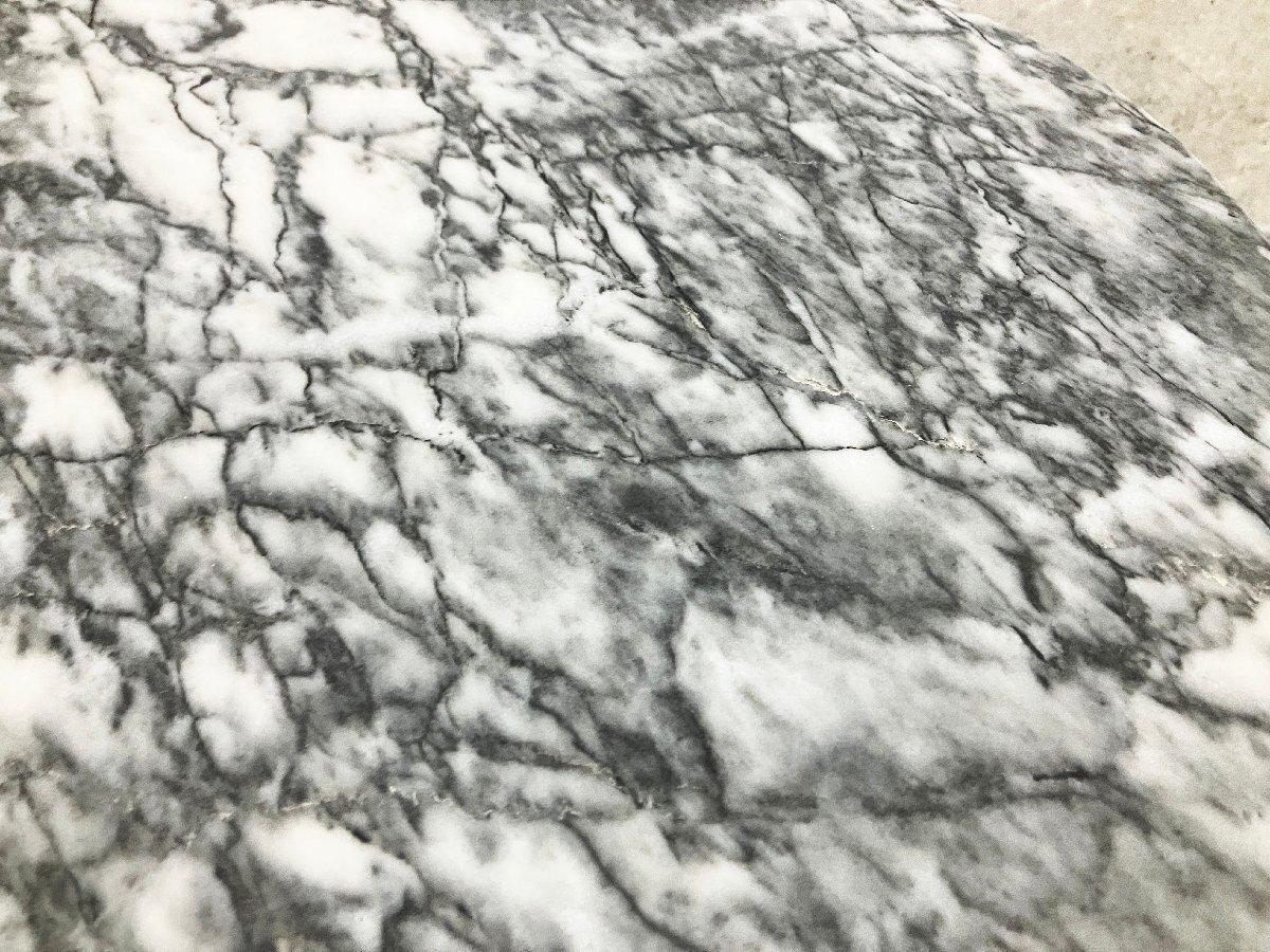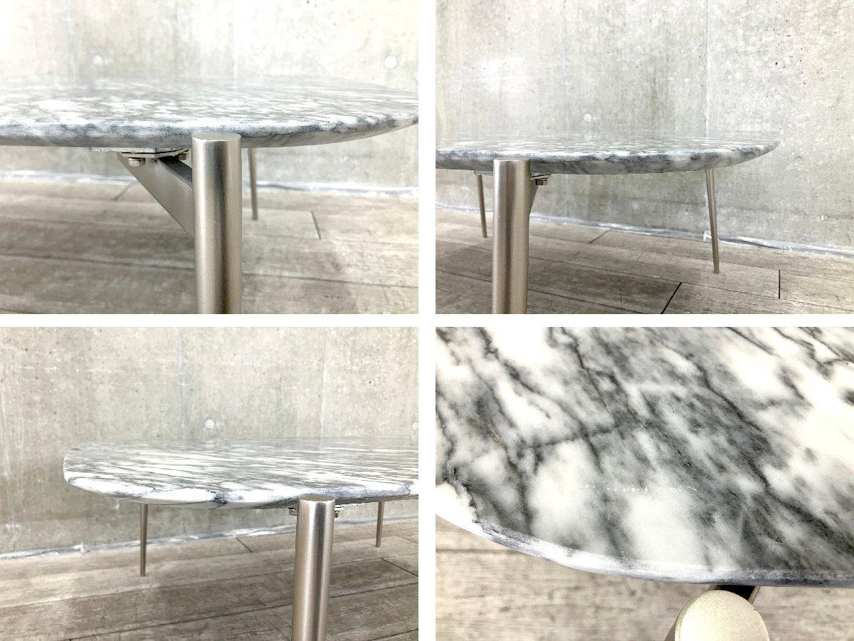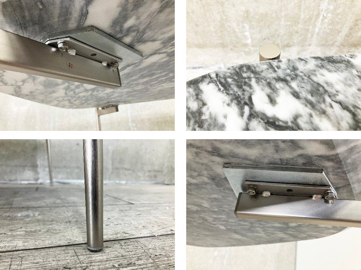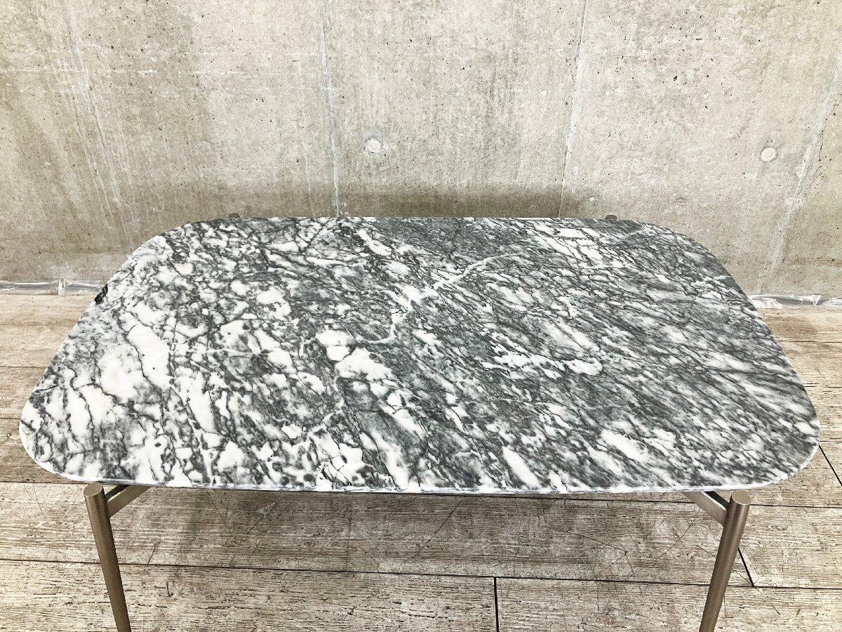 特徴的なマーブル天板が空間に独自の表情を与え、自然素材ならではの奥行きと上品な存在感をもたらします。
